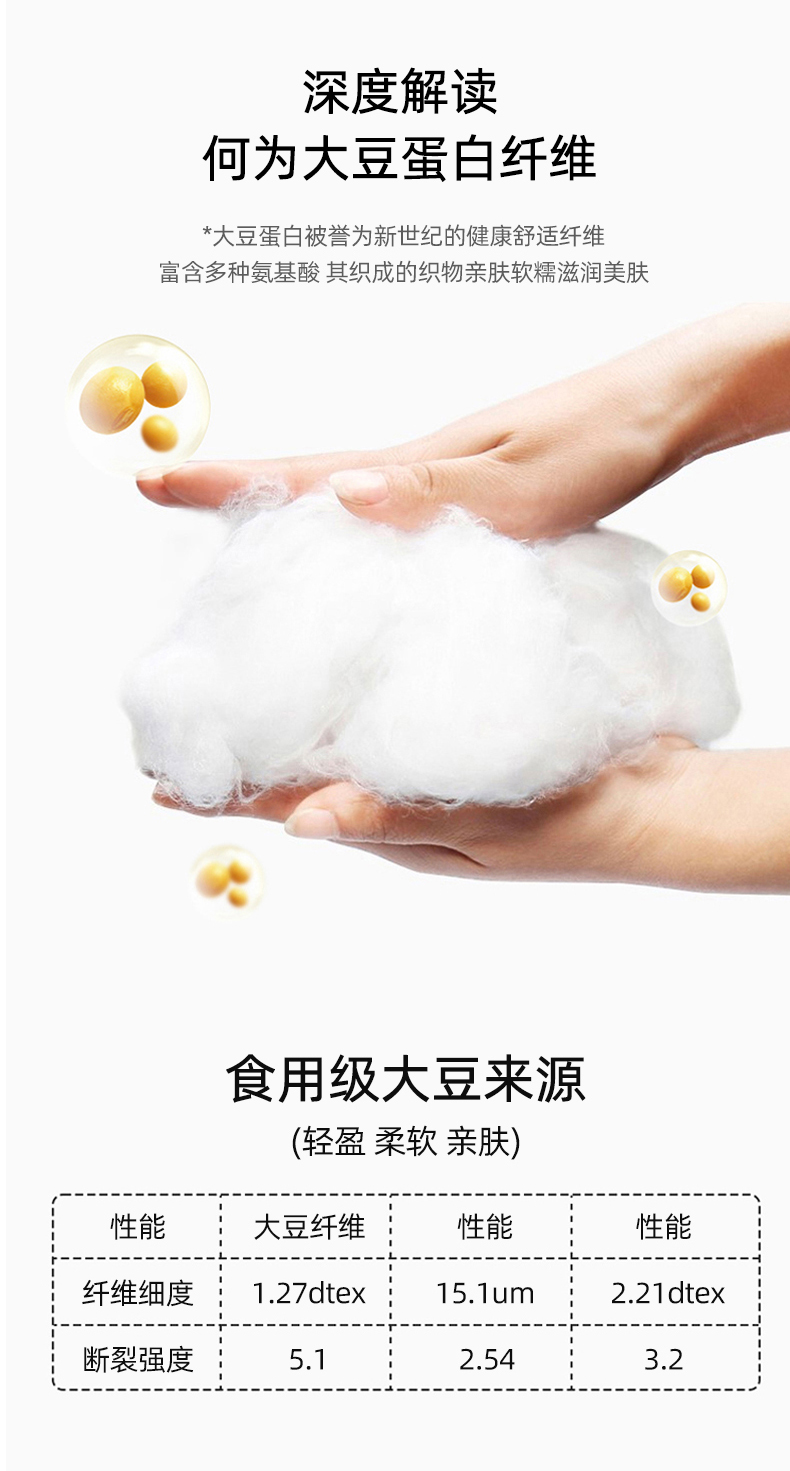 填充纤维种类: 大豆蛋白改性聚酯纤维