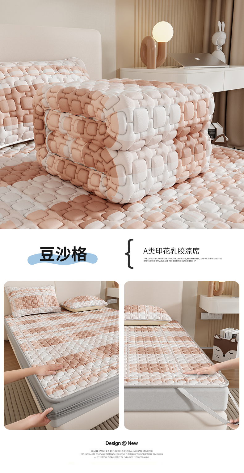 商品名称:世纪绒品 2026新款A类凉感条格乳胶床笠床席款凉席加厚12mm 床笠款-豆沙格