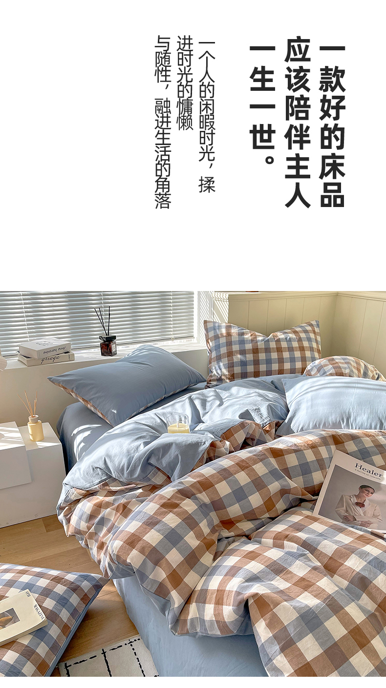 当前位置: 91家纺网 > 商品网购 > 床品套件 > 四件套 > 全棉普通四件套 > 春皖家纺 2026春夏新款全棉纯棉水洗棉四件套 翠竹-彩格