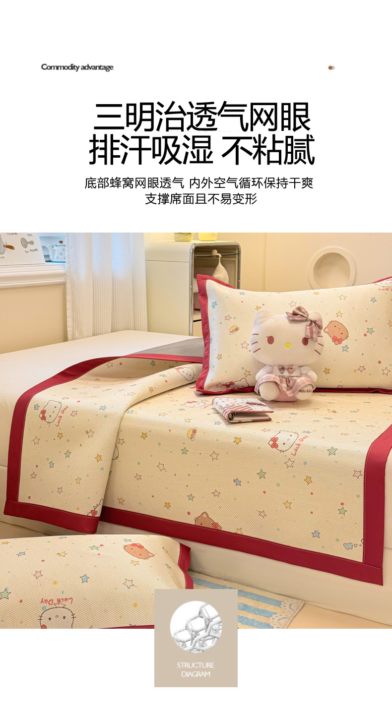 商品名称:慕尚家纺 2026新款清新凉感冰藤席床笠款 小猫耶