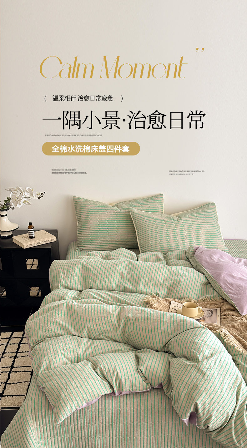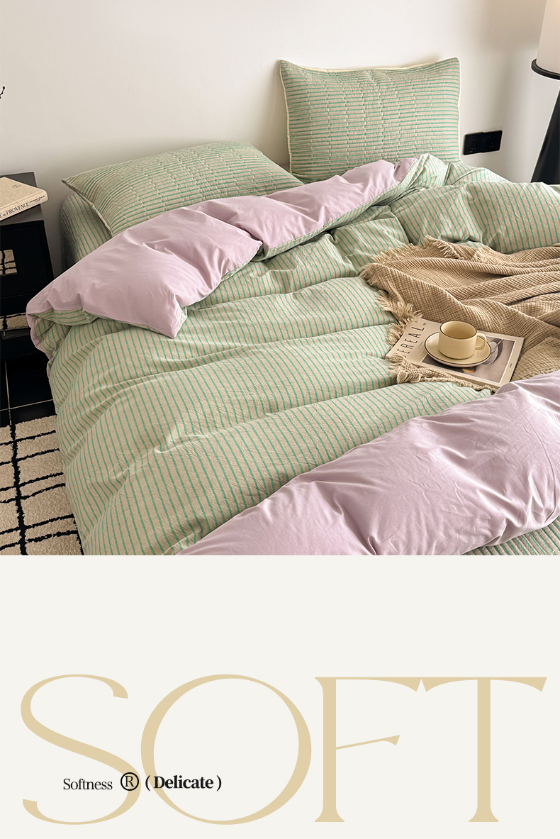 当前位置: 91家纺网 > 商品网购 > 床品套件 > 四件套 > 全棉普通四件套 > 妮可 2026新款全棉色织水洗棉床盖四件套-伦敦生活系列 伦敦生活-绿紫