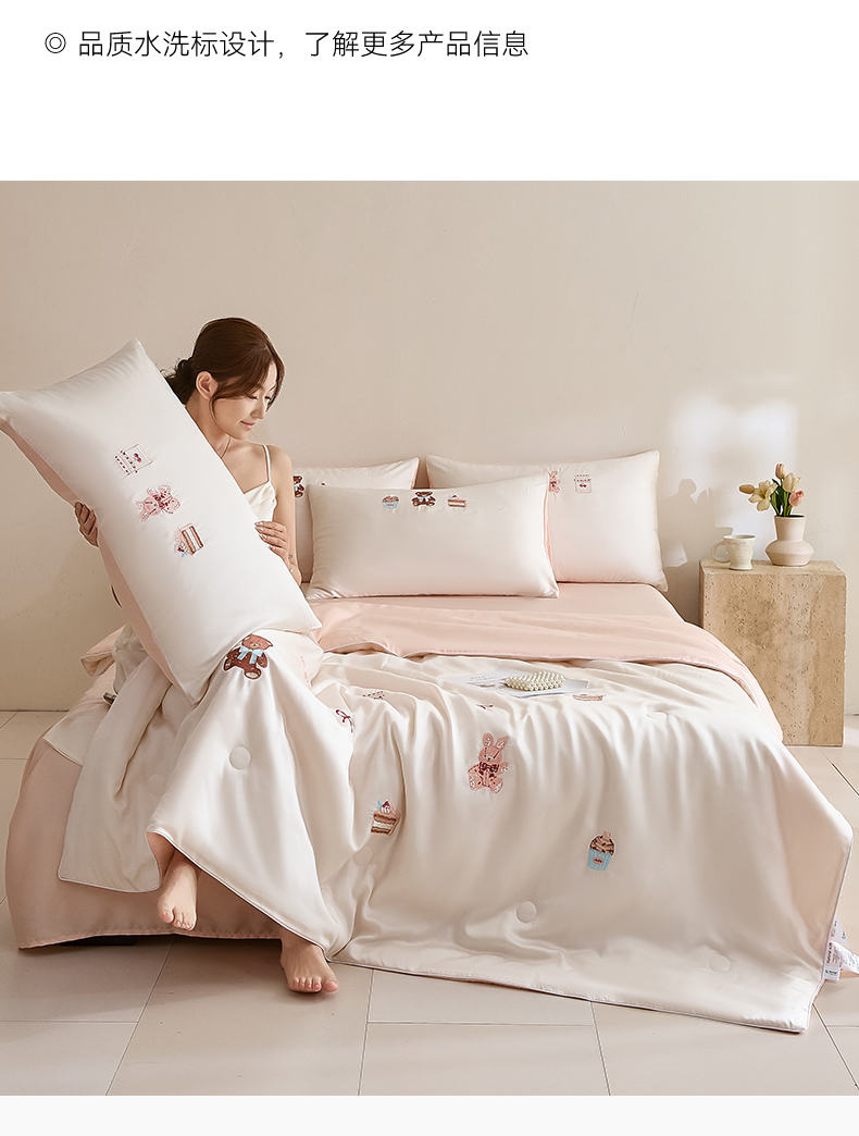 当前位置: 91家纺网 > 商品网购 > 被子 > 夏被 > DC 2026新款A类兰精天丝麻绳平绣系列夏被四件套 元气白桃+半熟蜜桃(焦糖小熊)