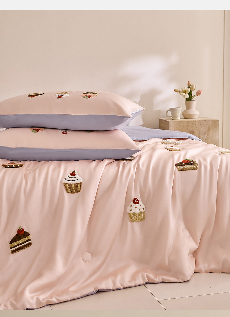 DC 2026新款A类兰精天丝毛巾绣系列夏被四件套 半熟蜜桃+风信紫(丝绒蛋糕)