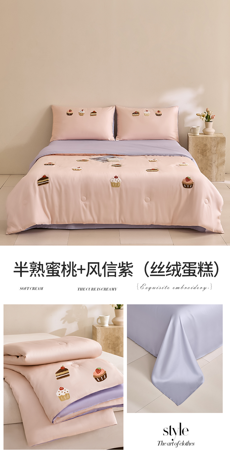 • 91家纺网 家纺一手货源 找家纺 DC 2026新款A类兰精天丝毛巾绣系列夏被四件套 半熟蜜桃+风信紫(丝绒蛋糕)