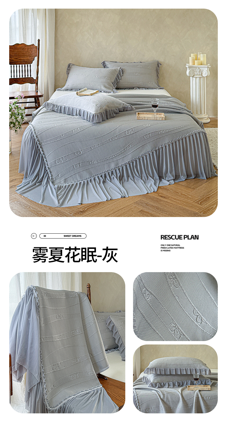 亿品家纺 2026直播爆款韩版赫本风花边款水洗双层纱夏被四件套【有买家秀加V】,茶墨,朵颜,蔷薇岛,山茶左岸,山奈,幸运,虞美人,组合图仅供展示