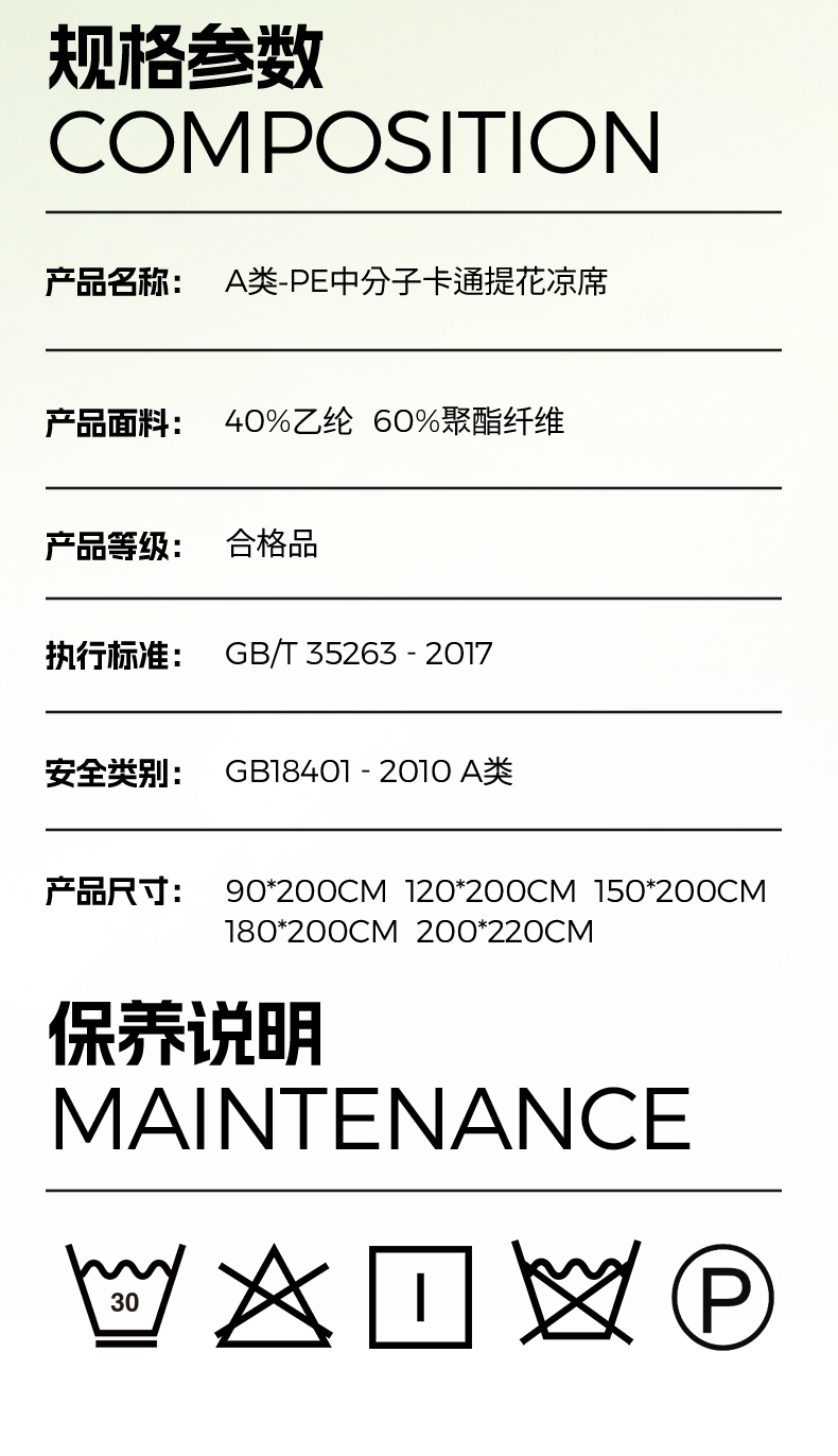 [{"sp_id":11,"sp_name":"\u989c\u8272","sp_format":2,"sp_list":[{"sp_value_id":1666,"sp_value_name":"PE\u63d0\u82b1\u51c9\u5e2d-\u5976\u840c\u72d7","sp_value_image":{"id":999,"path":"https:\/\/img3.91jf.com\/ghelp\/2026\/20260412\/20260412170333_181637.jpg"},"sp_value_video":{"id":0,"img":"","path":"","time":0,"download_num":0,"play_num":0},"price":"40.00","storage":5500,"weight":"1.100","is_check_weight":0,"plus_price":"","sp_sort":0}]},{"sp_id":29,"sp_name":"\u5c3a\u5bf8","sp_format":1,"sp_list":[{"sp_value_id":353,"sp_value_name":"90*200cm\u5355\u51c9\u5e2d","sp_value_image":{"id":0,"path":""},"sp_value_video":{"id":0,"img":"","path":"","time":0,"download_num":0,"play_num":0},"price":"40.00","storage":500,"weight":"1.100","is_check_weight":0,"plus_price":"","sp_sort":5},{"sp_value_id":354,"sp_value_name":"120*200cm\u5355\u51c9\u5e2d","sp_value_image":{"id":0,"path":""},"sp_value_video":{"id":0,"img":"","path":"","time":0,"download_num":0,"play_num":0},"price":"48.00","storage":500,"weight":"1.500","is_check_weight":0,"plus_price":"","sp_sort":6},{"sp_value_id":355,"sp_value_name":"150*200cm\u5355\u51c9\u5e2d","sp_value_image":{"id":0,"path":""},"sp_value_video":{"id":0,"img":"","path":"","time":0,"download_num":0,"play_num":0},"price":"58.00","storage":500,"weight":"1.900","is_check_weight":0,"plus_price":"","sp_sort":7},{"sp_value_id":356,"sp_value_name":"180*200cm\u5355\u51c9\u5e2d","sp_value_image":{"id":0,"path":""},"sp_value_video":{"id":0,"img":"","path":"","time":0,"download_num":0,"play_num":0},"price":"65.00","storage":500,"weight":"2.300","is_check_weight":0,"plus_price":"","sp_sort":8},{"sp_value_id":357,"sp_value_name":"200*220cm\u5355\u51c9\u5e2d","sp_value_image":{"id":0,"path":""},"sp_value_video":{"id":0,"img":"","path":"","time":0,"download_num":0,"play_num":0},"price":"75.00","storage":500,"weight":"2.800","is_check_weight":0,"plus_price":"","sp_sort":9},{"sp_value_id":358,"sp_value_name":"\u6795\u5957\u4e00\u5bf9","sp_value_image":{"id":0,"path":""},"sp_value_video":{"id":0,"img":"","path":"","time":0,"download_num":0,"play_num":0},"price":"18.00","storage":500,"weight":"0.400","is_check_weight":0,"plus_price":"","sp_sort":10},{"sp_value_id":359,"sp_value_name":"90*200cm\u4e24\u4ef6\u5957","sp_value_image":{"id":0,"path":""},"sp_value_video":{"id":0,"img":"","path":"","time":0,"download_num":0,"play_num":0},"price":"49.00","storage":500,"weight":"1.300","is_check_weight":0,"plus_price":"","sp_sort":11},{"sp_value_id":773,"sp_value_name":"120*200cm\u4e24\u4ef6\u5957","sp_value_image":{"id":0,"path":""},"sp_value_video":{"id":0,"img":"","path":"","time":0,"download_num":0,"play_num":0},"price":"57.00","storage":500,"weight":"1.700","is_check_weight":0,"plus_price":"","sp_sort":13},{"sp_value_id":802,"sp_value_name":"150*200cm\u4e09\u4ef6\u5957","sp_value_image":{"id":0,"path":""},"sp_value_video":{"id":0,"img":"","path":"","time":0,"download_num":0,"play_num":0},"price":"76.00","storage":500,"weight":"2.300","is_check_weight":0,"plus_price":"","sp_sort":14},{"sp_value_id":363,"sp_value_name":"180*200cm\u4e09\u4ef6\u5957","sp_value_image":{"id":0,"path":""},"sp_value_video":{"id":0,"img":"","path":"","time":0,"download_num":0,"play_num":0},"price":"83.00","storage":500,"weight":"2.700","is_check_weight":0,"plus_price":"","sp_sort":15},{"sp_value_id":803,"sp_value_name":"200*220cm\u4e09\u4ef6\u5957","sp_value_image":{"id":0,"path":""},"sp_value_video":{"id":0,"img":"","path":"","time":0,"download_num":0,"play_num":0},"price":"93.00","storage":500,"weight":"3.200","is_check_weight":0,"plus_price":"","sp_sort":15}]}]