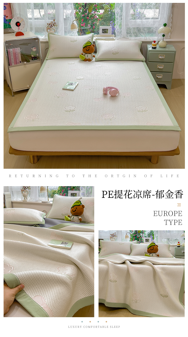 (总)雯豆家纺 2026新款PE中分子凉感凉席条席三件套加厚三明治款复合卡通提花凉席,PE提花凉席-领带熊,PE提花凉席-北极熊,PE提花凉席-蝴蝶结,PE提花凉席-腊肠狗,PE提花凉席-奶萌狗,PE提花凉席-甜心草莓,PE提花凉席-郁金香