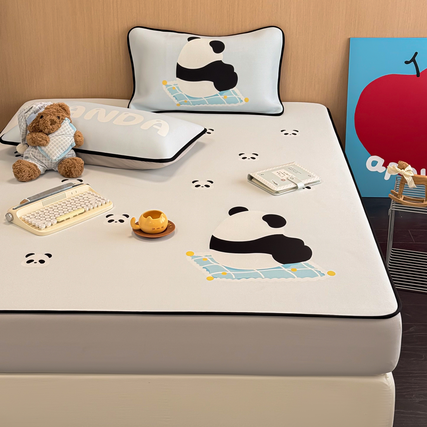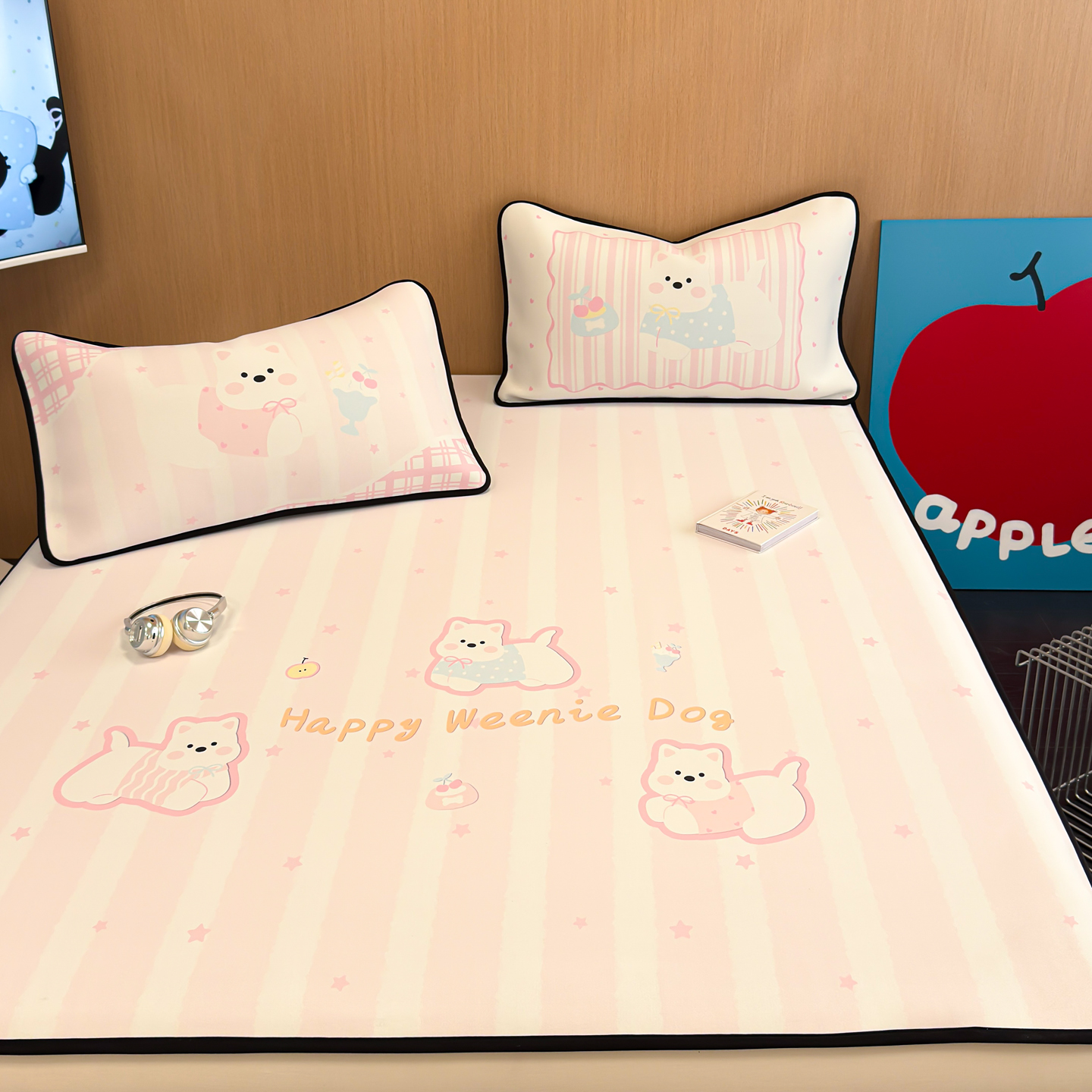 • 91家纺网 家纺一手货源 找家纺 懒猫家纺 2026新款大版卡通云感果冻床席床笠凉席 蜜桃汪星-床席款