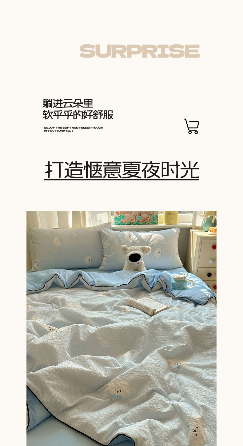 (总)贝扬思家纺 2026新款泡芙纱单夏被凉糖系列(凉而不冰的触感,清凉与柔软兼得),凉糖-贝壳星,凉糖-冰激凌星星,凉糖-春日天桃心粉,凉糖-躲猫猫,凉糖-躲雨小兔,凉糖-黄粉猫团,凉糖-机智蓝狗,凉糖-酒渍樱桃,凉糖-可可小猫条,凉糖-蓝领结狗,凉糖-蓝雪草,凉糖-猫咪集粉,凉糖-描线小猫咖,凉糖-魔法星星,凉糖-抹茶南瓜,凉糖-木马小花团,凉糖-浅夏花信,凉糖-碎花藏甜,凉糖-甜品萌狗,凉糖-摇摇木马,凉糖-悦悦小兔,凉糖-织纹木马迹