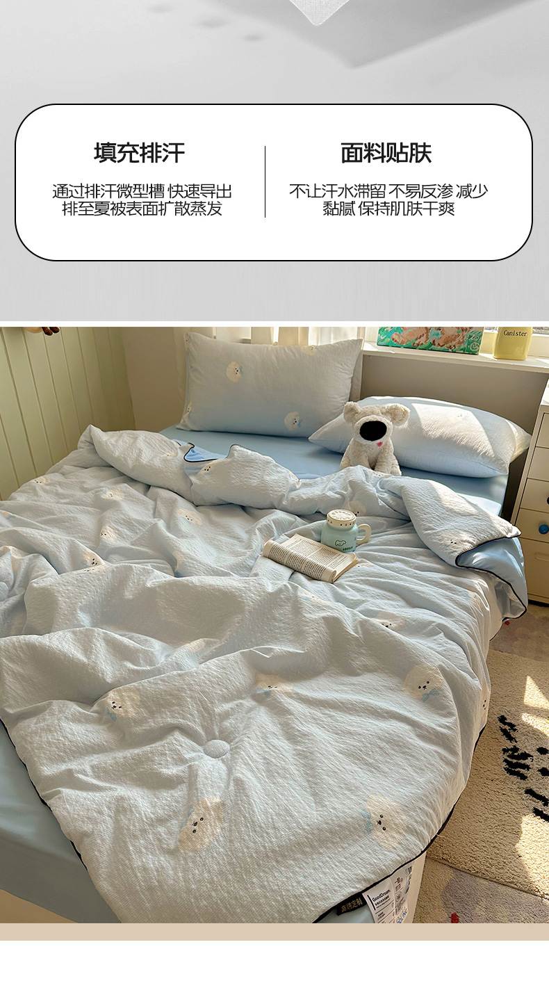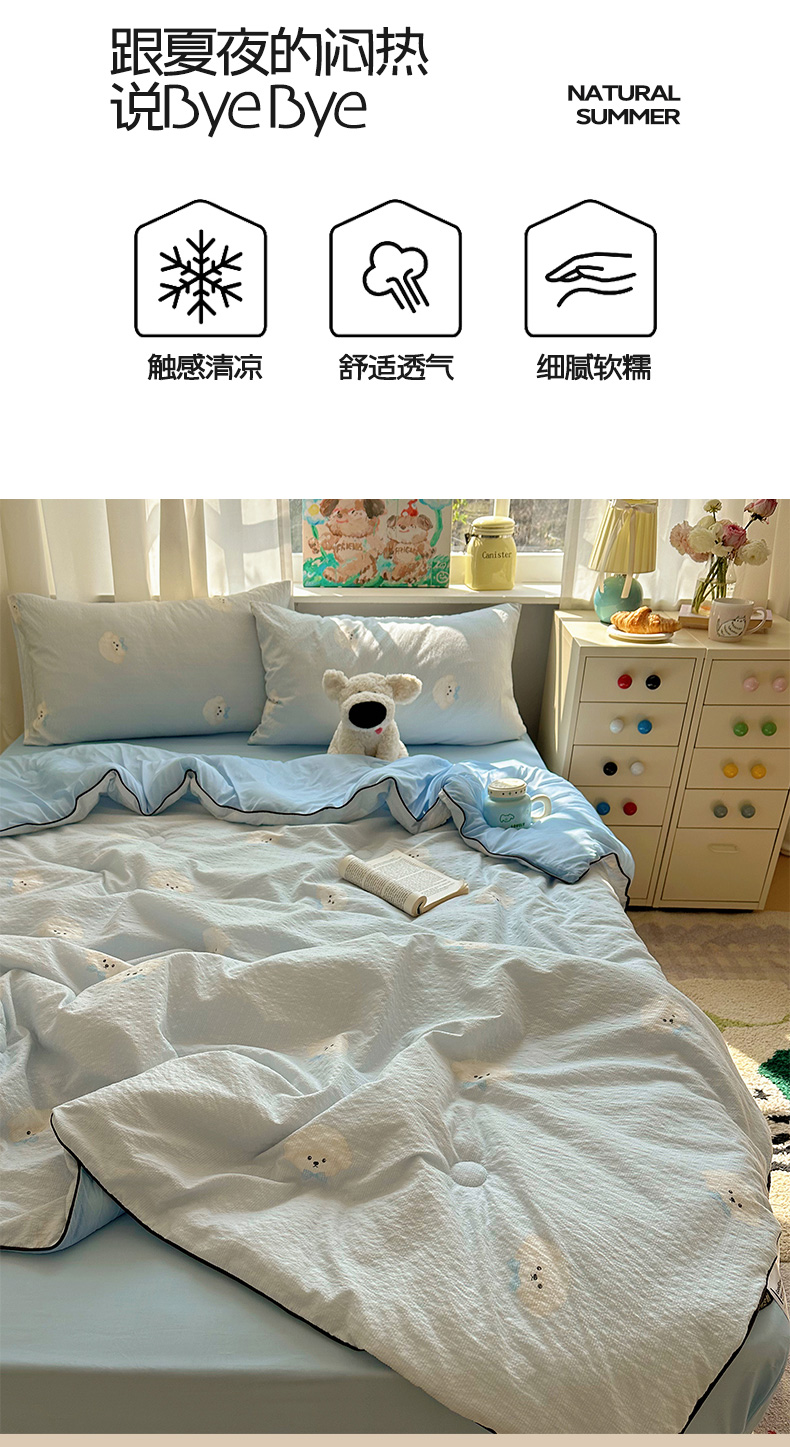 商品名称:贝扬思家纺 2026新款泡芙纱单夏被凉糖系列(凉而不冰的触感,清凉与柔软兼得) 凉糖-蓝领结狗