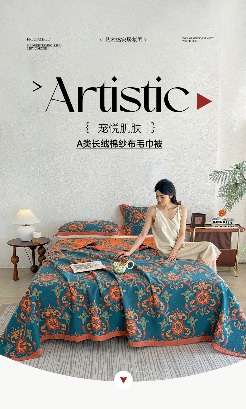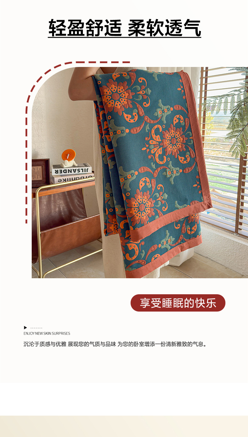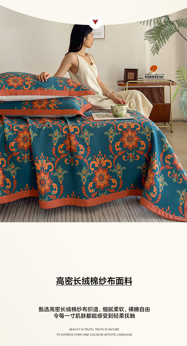 • 91家纺网 家纺一手货源 找家纺 棠薇家纺 2026新款纱布盖毯长绒棉纱布毛巾被夏被单双人棉纱盖毯毛巾毯夏季夏凉被空调被毯子可铺可盖床盖 温婉花境
