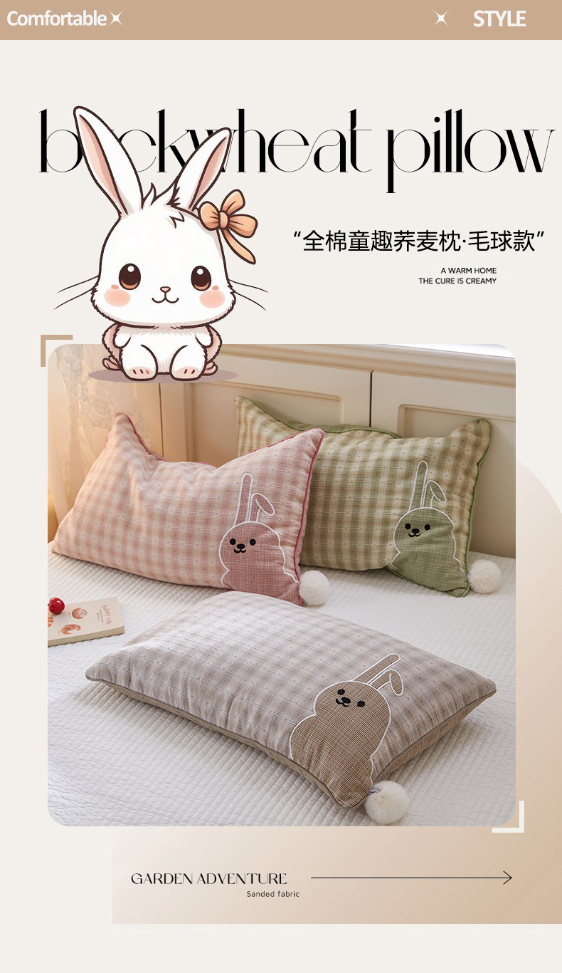 商品名称:贵夫人 2026新款童趣荞麦枕枕头枕芯毛球款 粉色单只