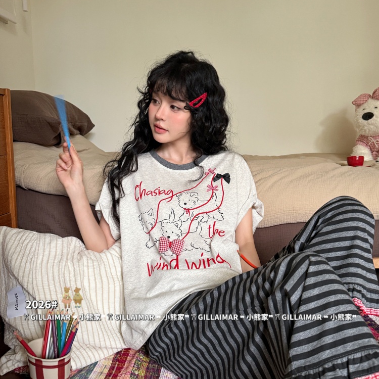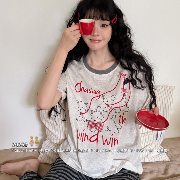 当前位置: 91家纺网 > 商品网购 > 居家日用 > 睡衣/家居服套装 > (总)妍景家居生活馆 2026新款莱赛尔冰丝棉睡衣两件套遛遛狗