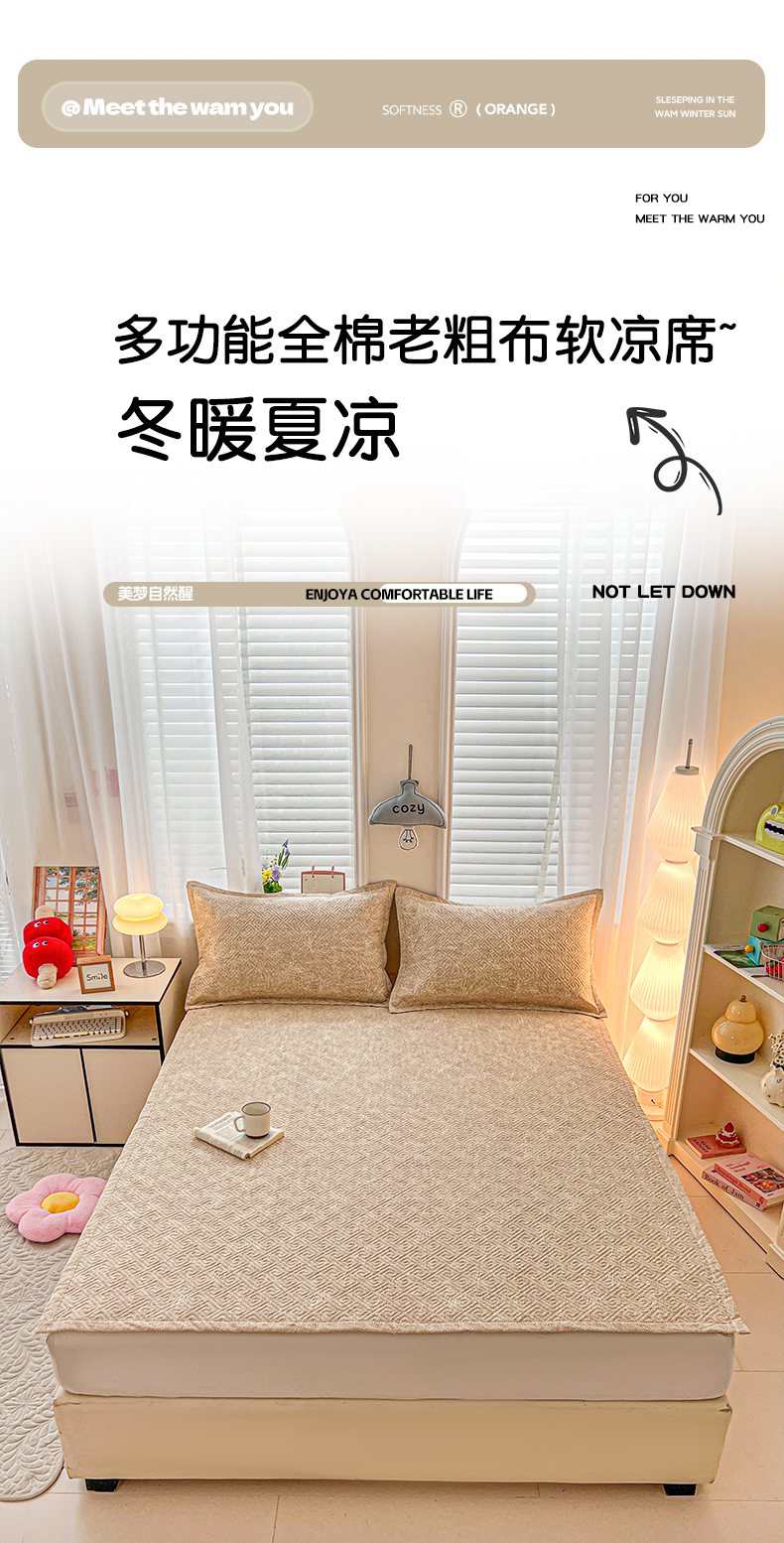 当前位置: 91家纺网 > 商品网购 > 床上用品 > 凉席 > 忆生活家纺 2026新款A类全棉老粗布软凉席夹棉床盖可机洗 麦浪织纹