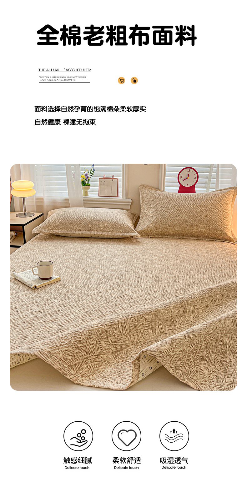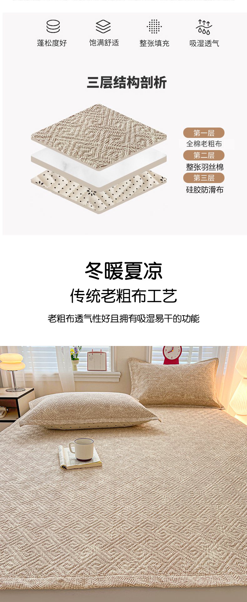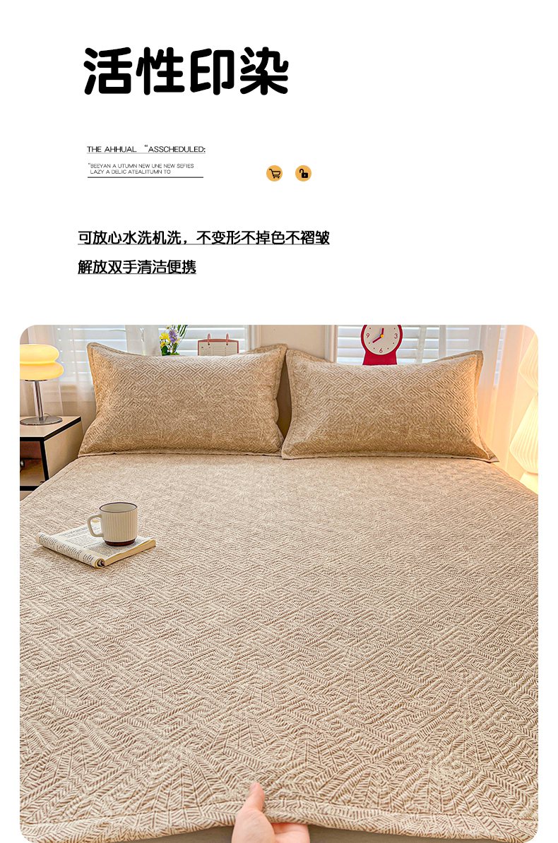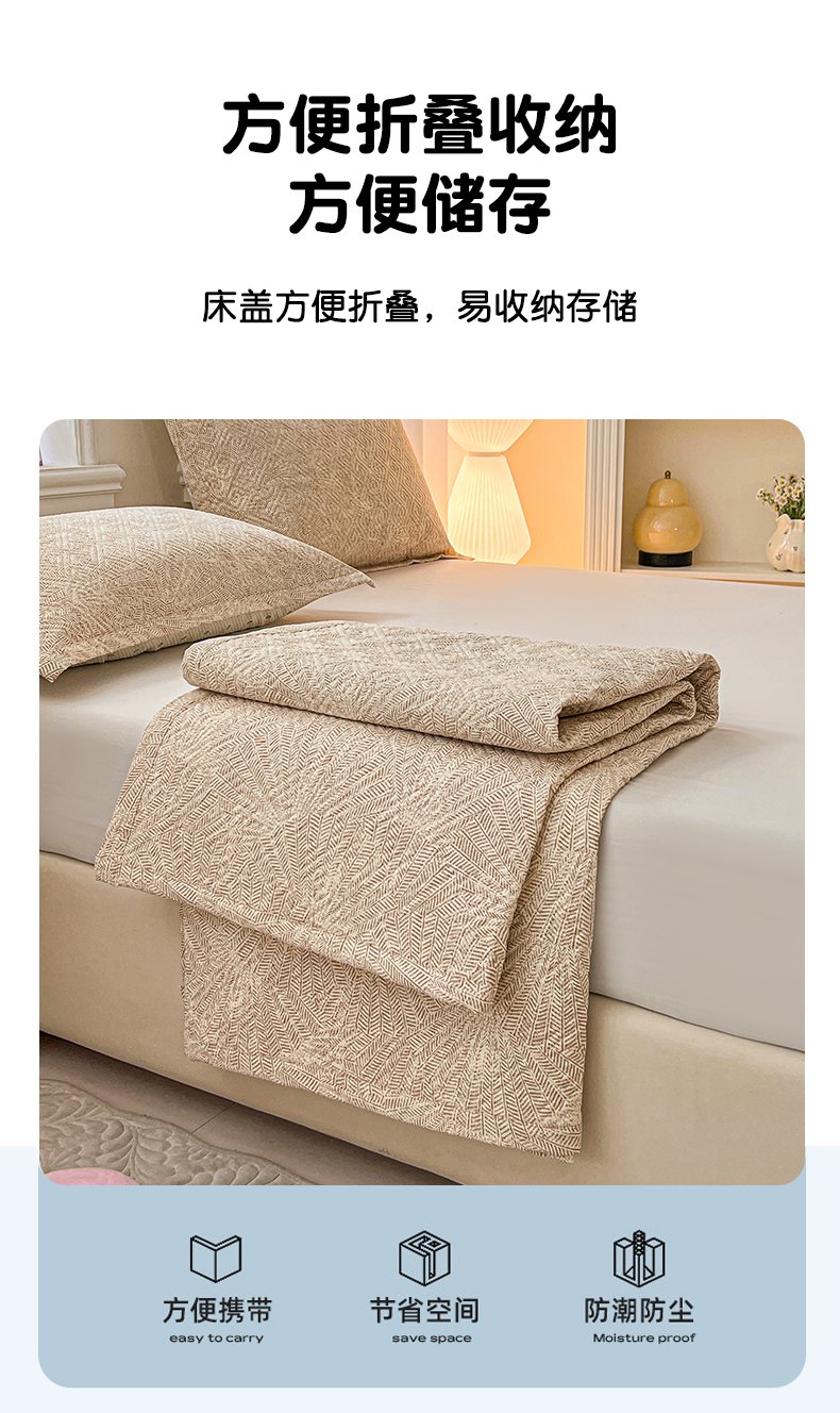 • 91家纺网 家纺一手货源 找家纺 忆生活家纺 2026新款A类全棉老粗布软凉席夹棉床盖可机洗 麦浪织纹