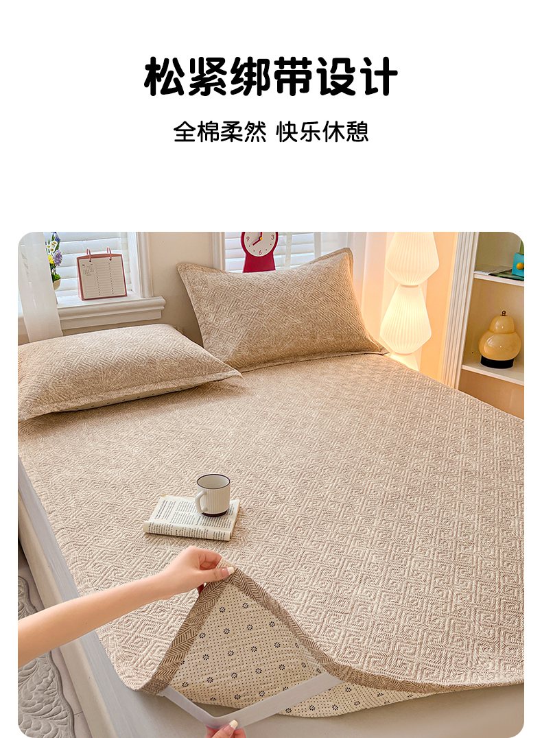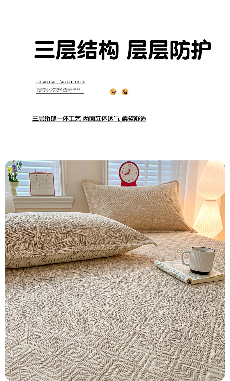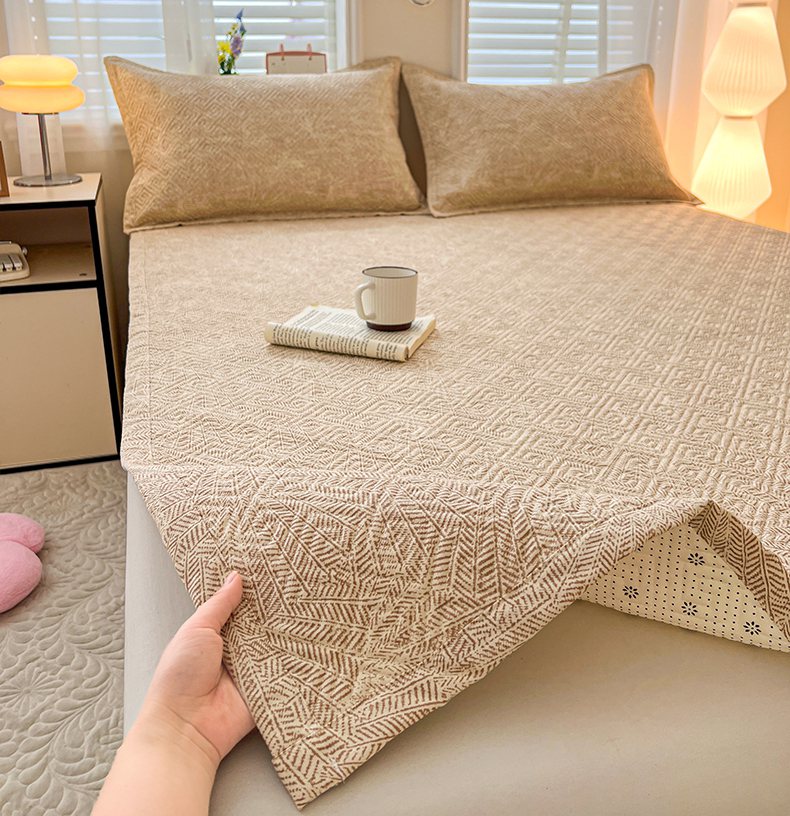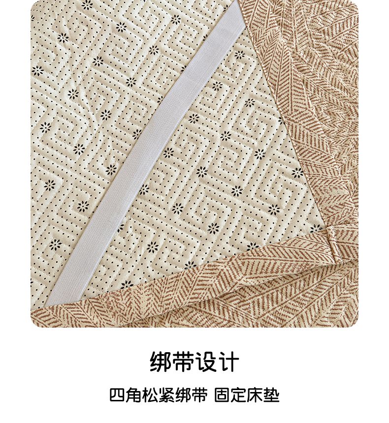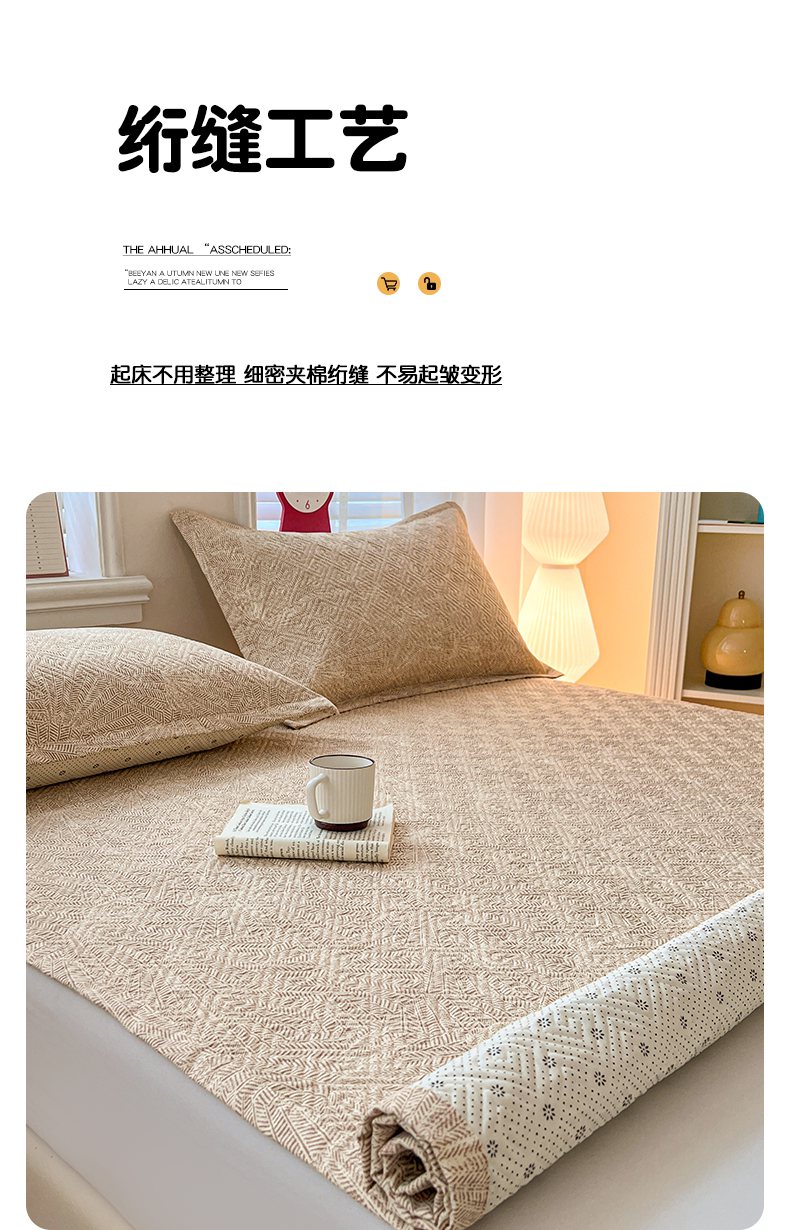 忆生活家纺 2026新款A类全棉老粗布软凉席夹棉床盖可机洗 麦浪织纹