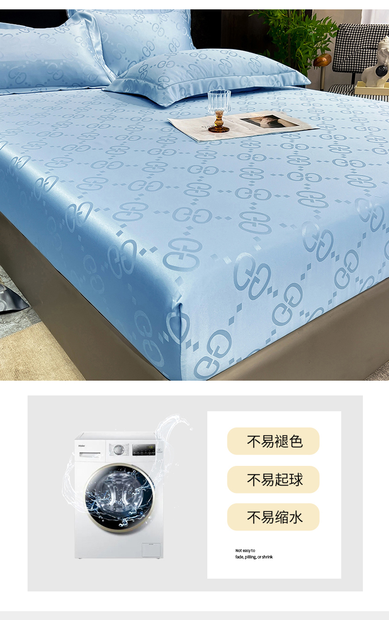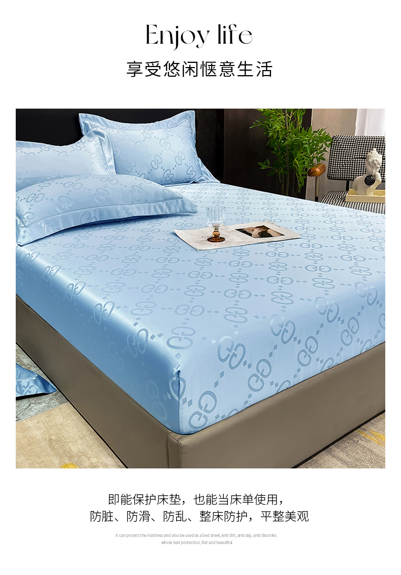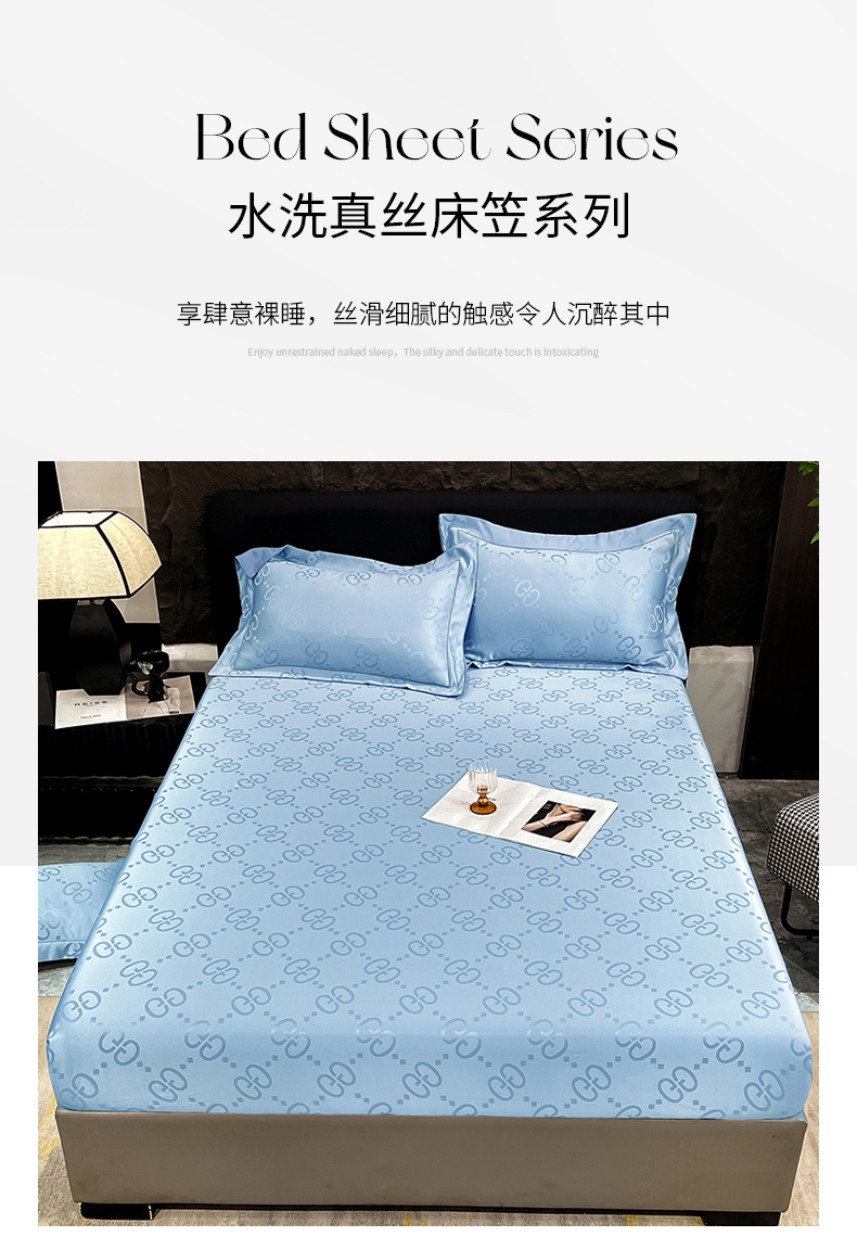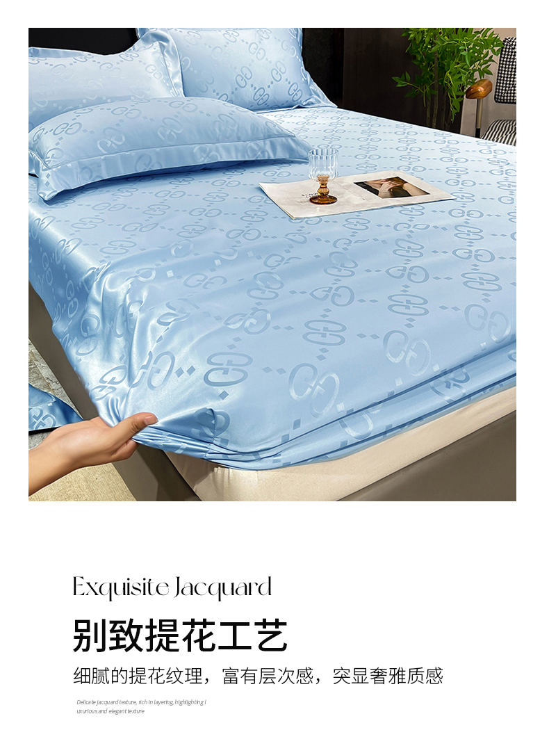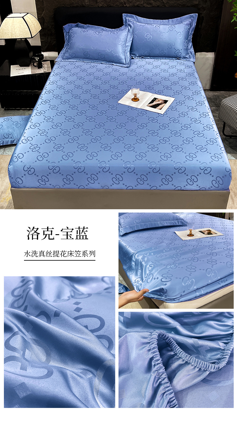 商品名称:经年 2026新款水洗真丝提花床笠单床笠床笠单件 洛克-天蓝