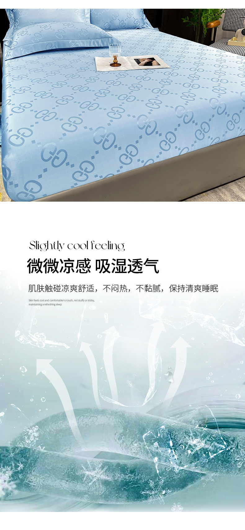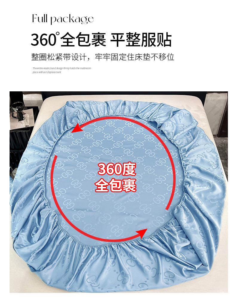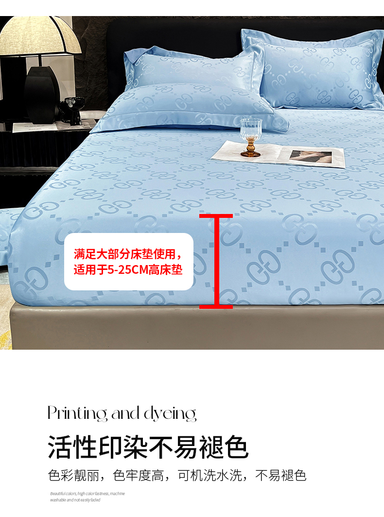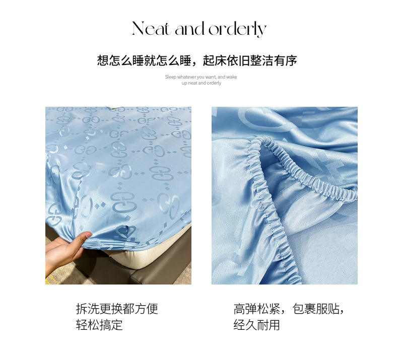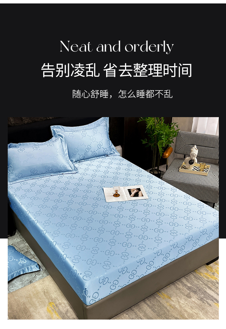 商品名称:经年 2026新款水洗真丝提花床笠单床笠床笠单件 洛克-天蓝