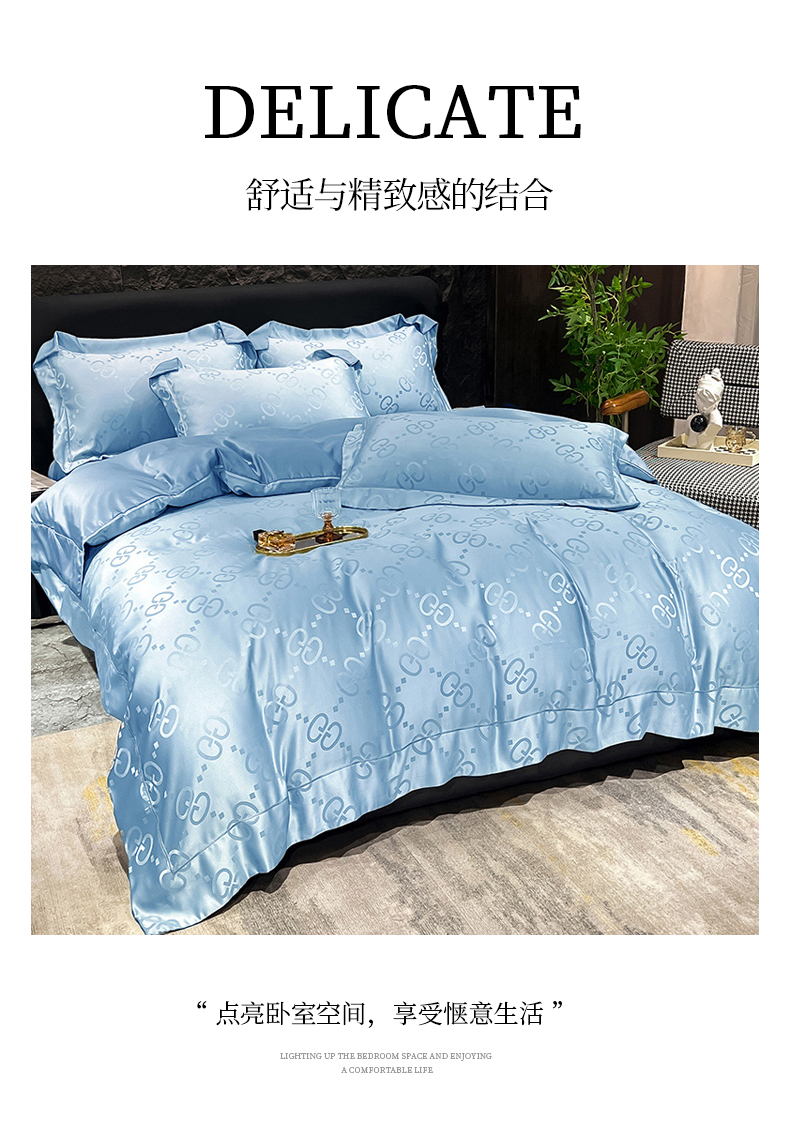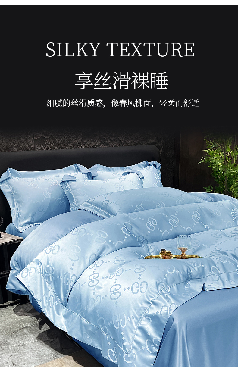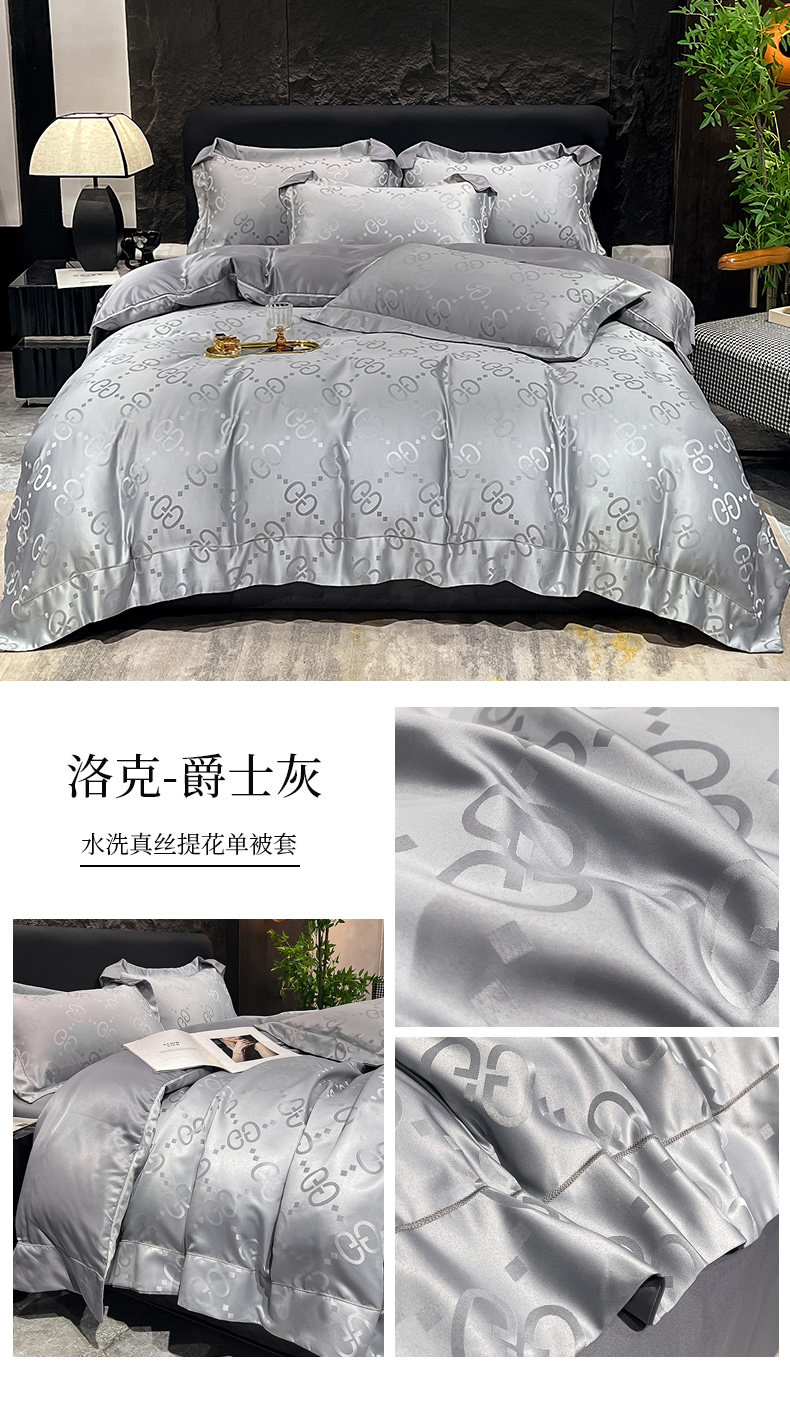 (总) 新25 经年2025年 水洗真丝冰丝天丝提花四件套直播爆款 格林系列 ,格林-宝蓝,格林-粉玉,格林-浅灰,格林-天蓝,格林-香槟