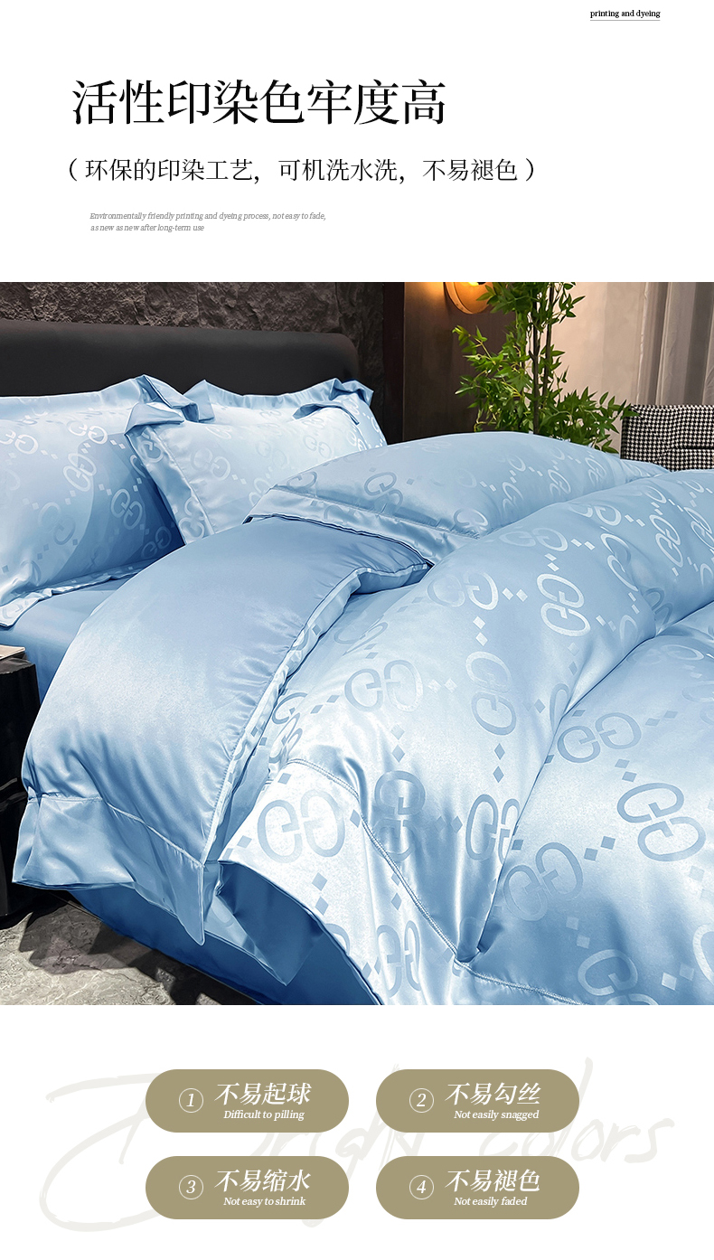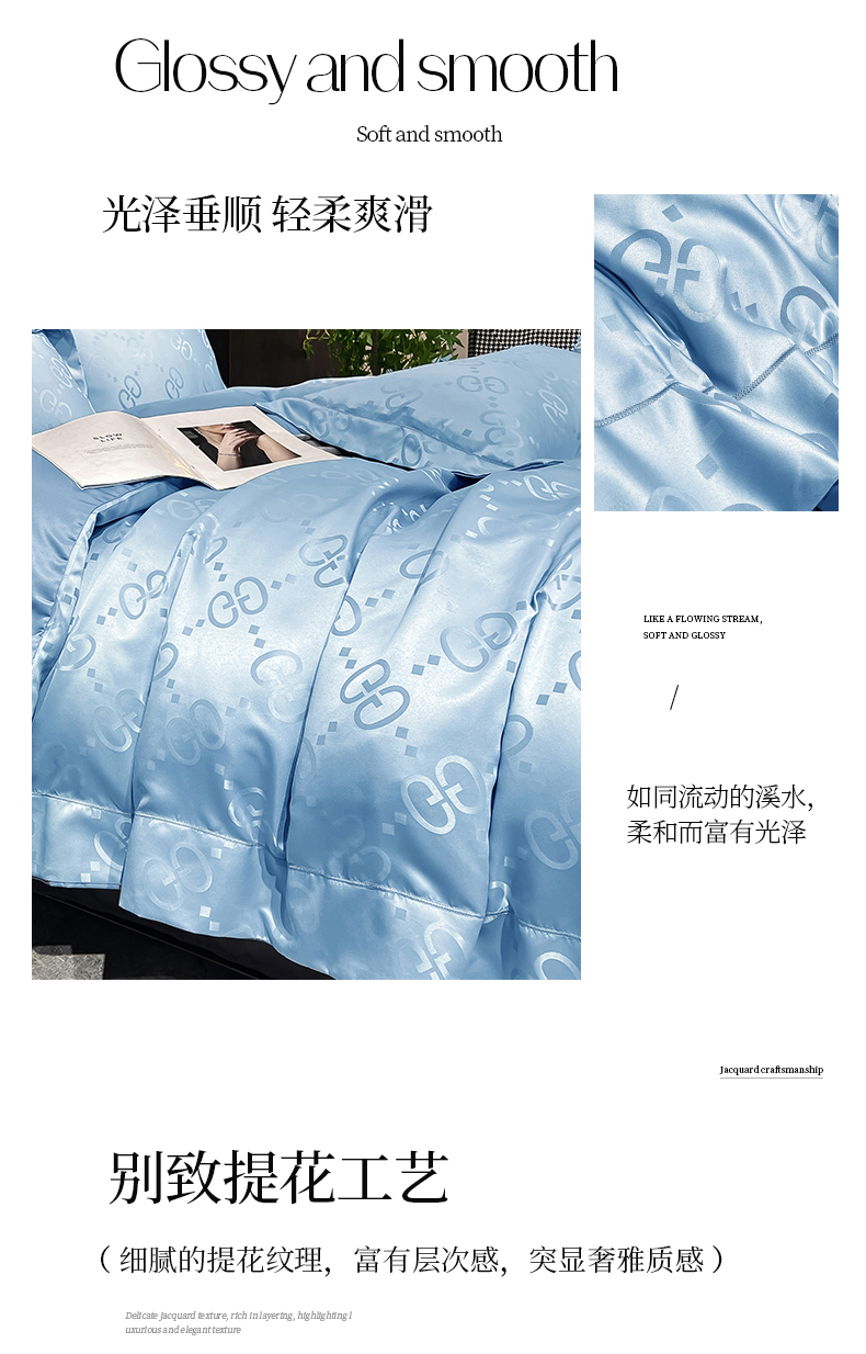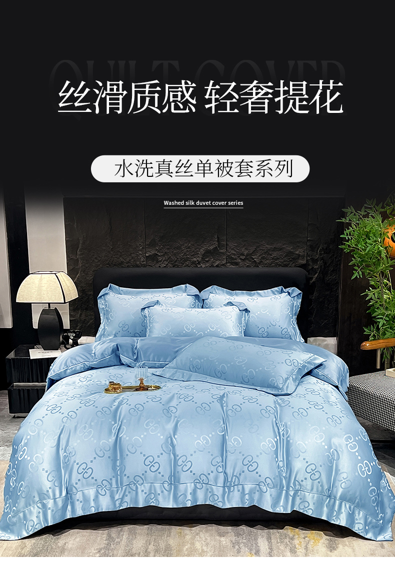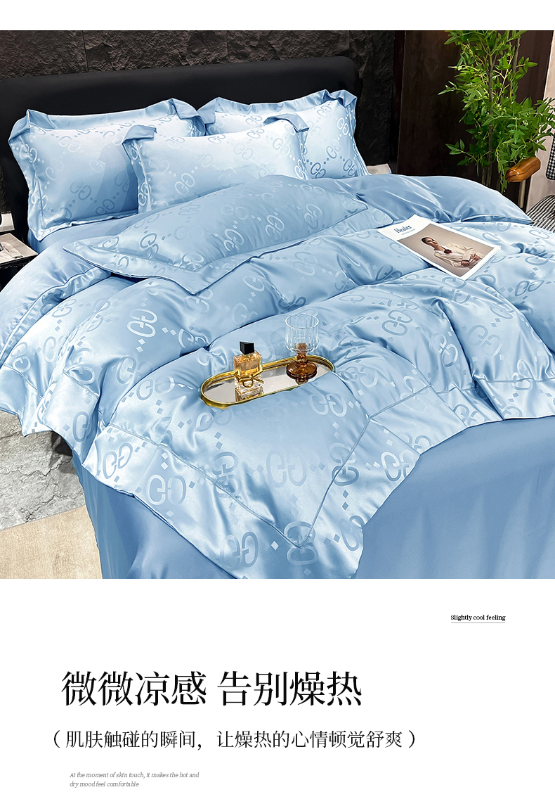 (总) 新25 经年2025年 水洗真丝冰丝天丝提花四件套直播爆款 格林系列 ,格林-宝蓝,格林-粉玉,格林-浅灰,格林-天蓝,格林-香槟