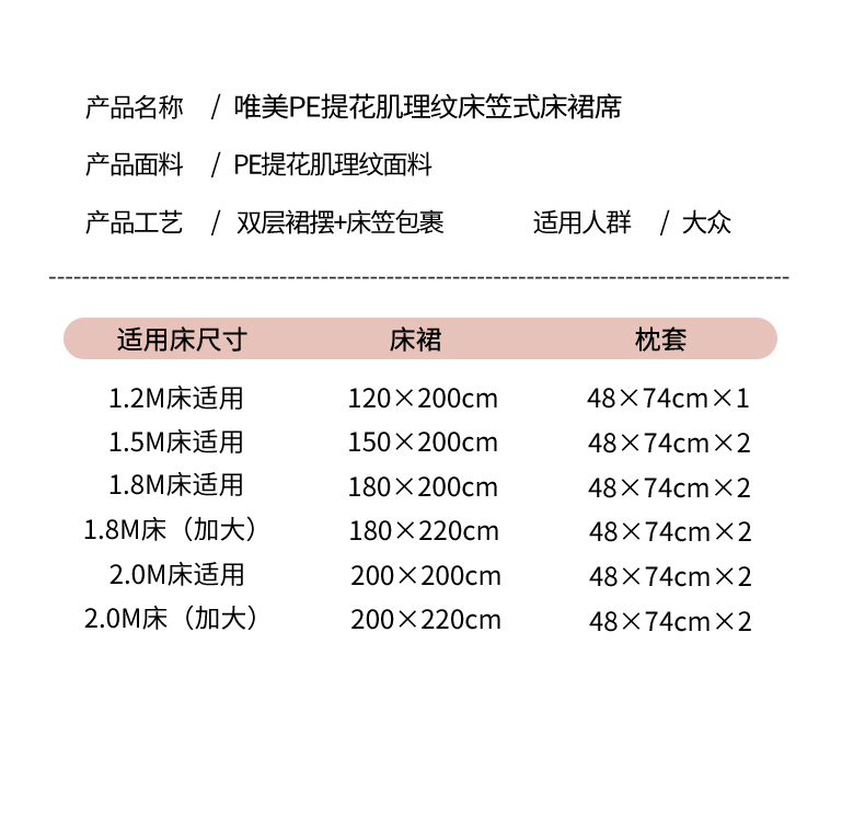 (总)情恒家纺 2026春夏新款PE提花肌理纹床笠式床裙席凉席席子-安娜,安娜-豆沙粉,安娜-抹茶绿,安娜-深远灰,安娜-晚安蓝,安娜-星辰灰