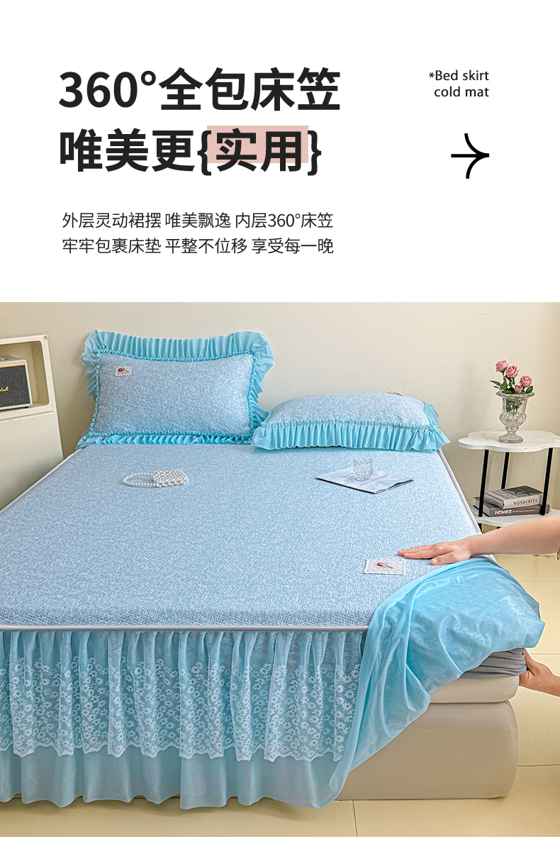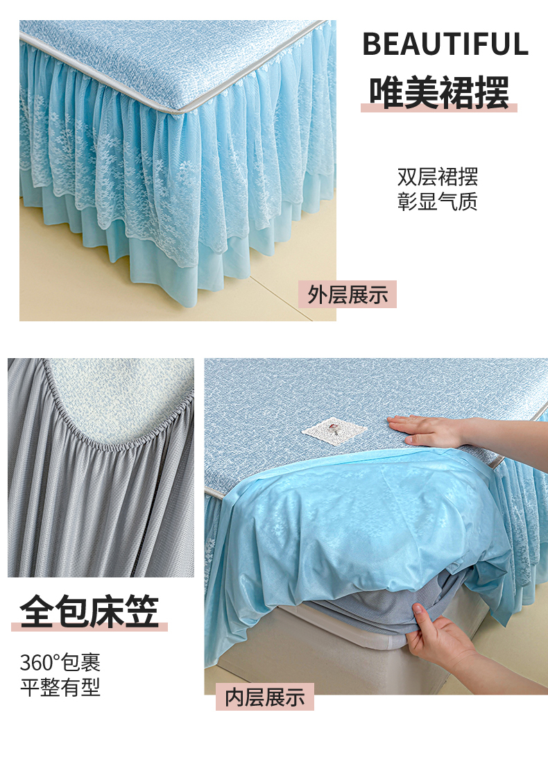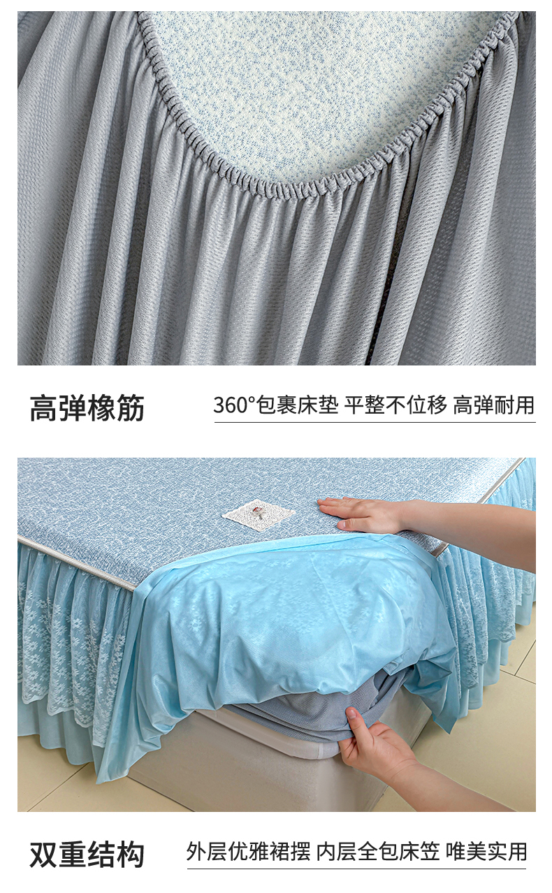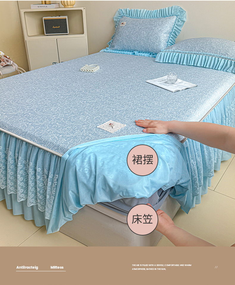 当前位置: 91家纺网 > 商品网购 > 床上用品 > 凉席 > 情恒家纺 2026春夏新款PE提花肌理纹床笠式床裙席凉席席子-安娜 安娜-晚安蓝