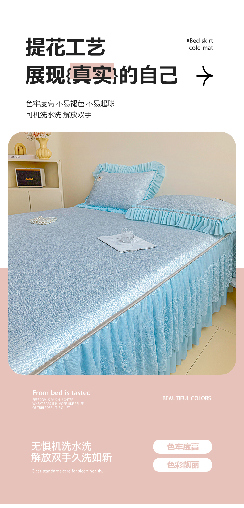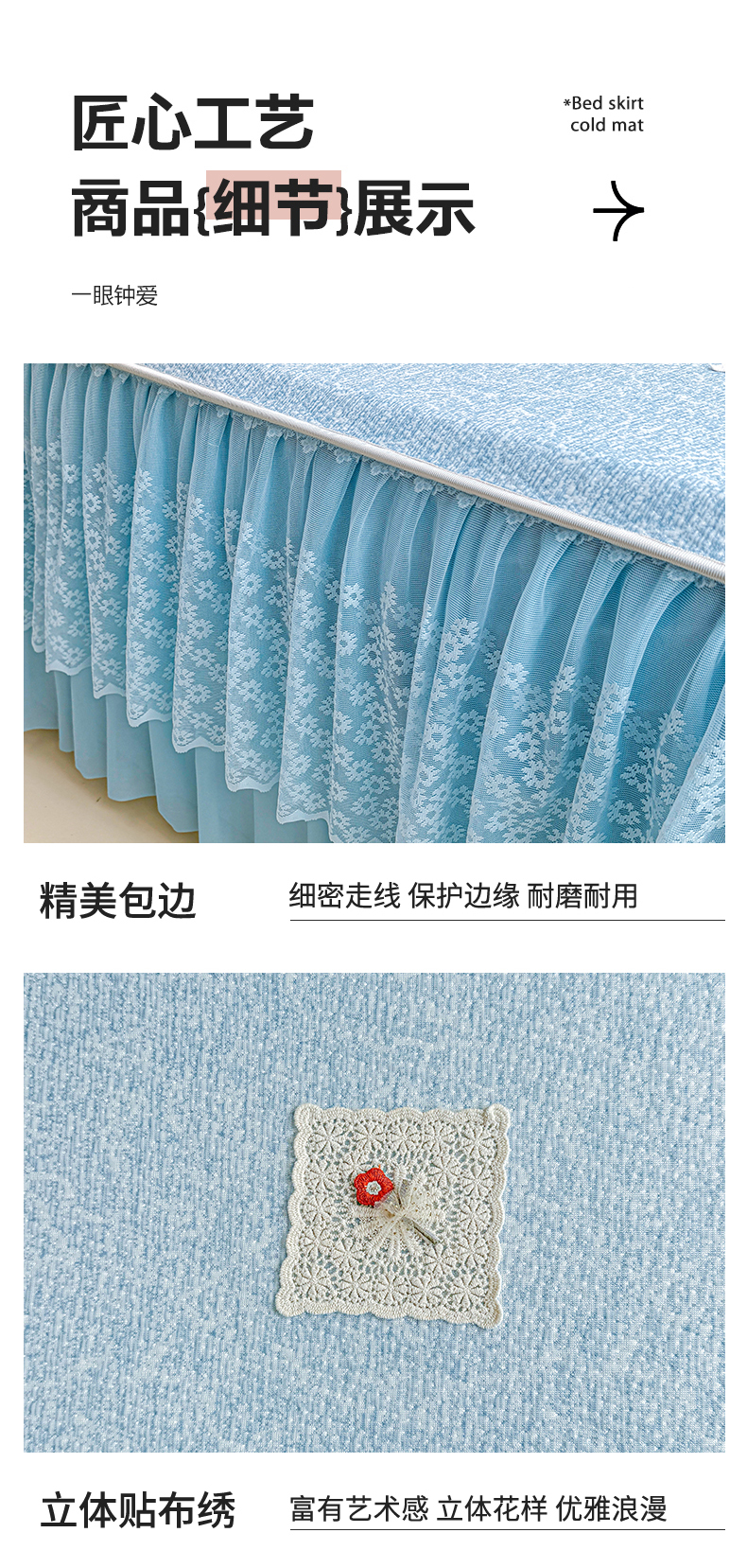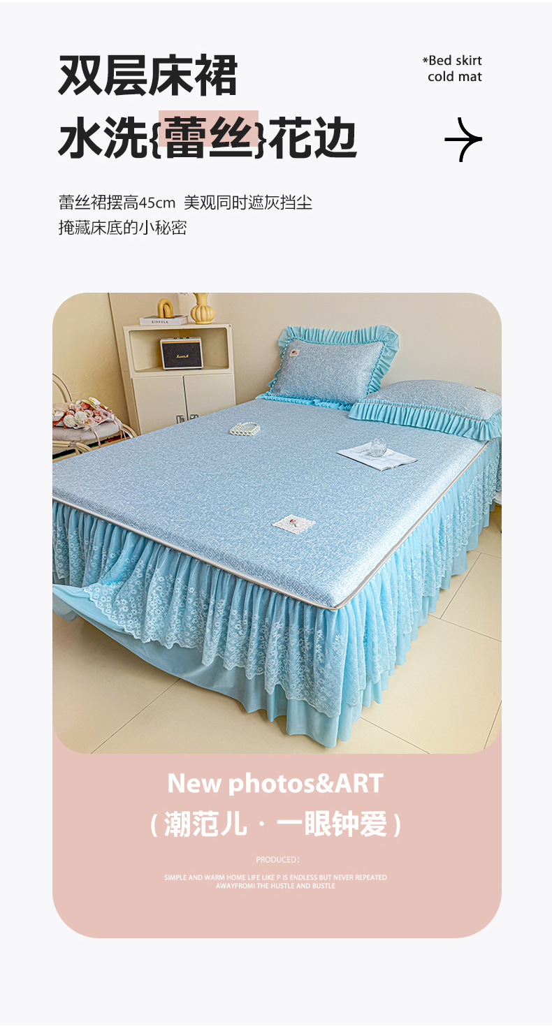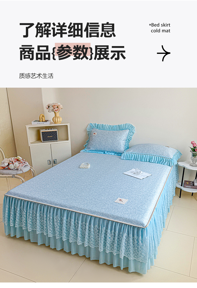 • 91家纺网 家纺一手货源 找家纺 情恒家纺 2026春夏新款PE提花肌理纹床笠式床裙席凉席席子-安娜 安娜-晚安蓝