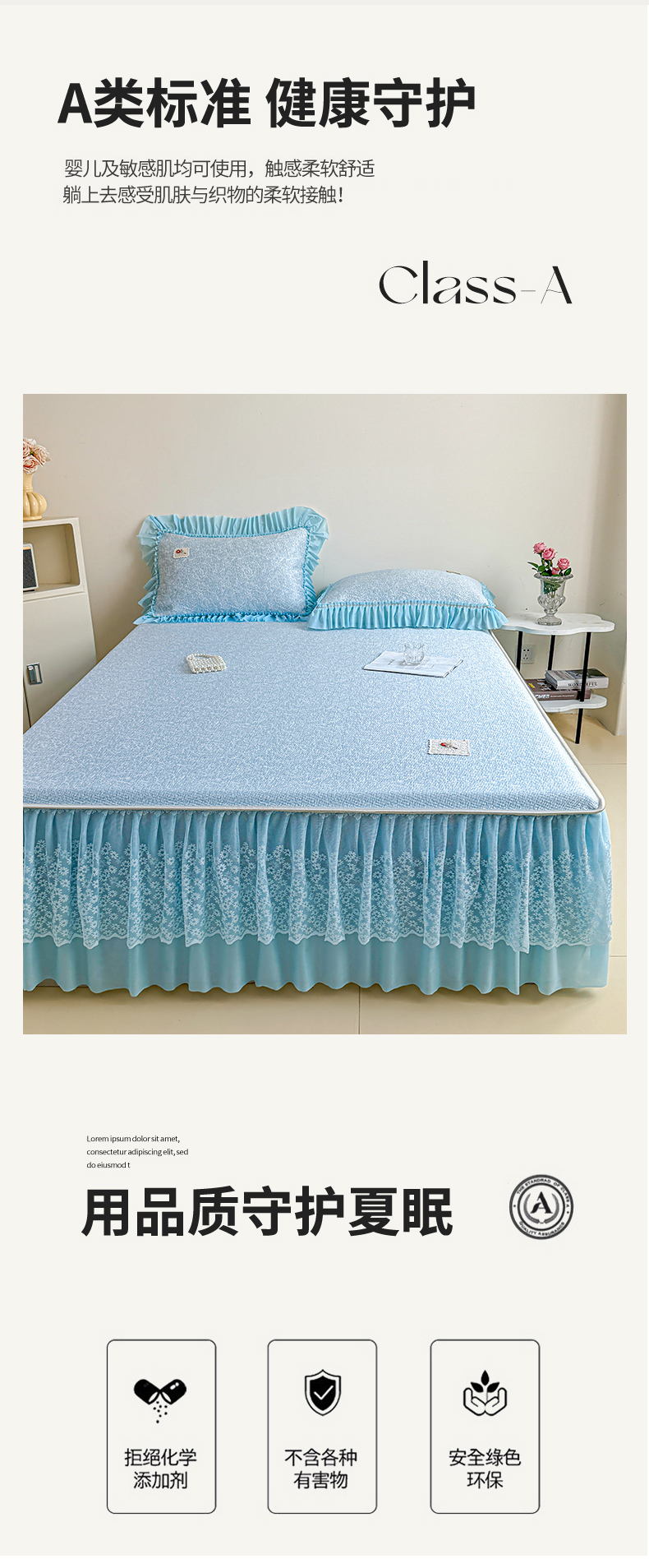 • 91家纺网 家纺一手货源 找家纺 (总)情恒家纺 2026春夏新款PE提花肌理纹床笠式床裙席凉席席子-安娜,安娜-豆沙粉,安娜-抹茶绿,安娜-深远灰,安娜-晚安蓝,安娜-星辰灰