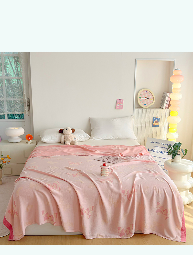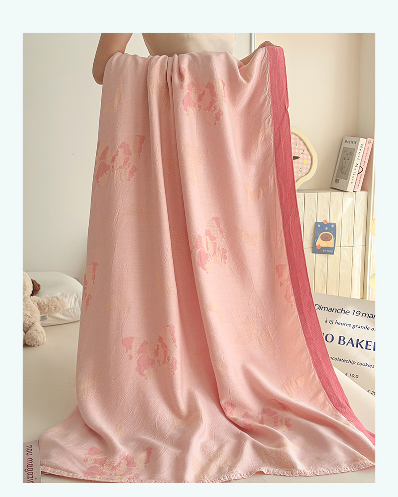 商品名称:棠薇家纺 2026新款竹纤维毯子冷感毯毛巾被柔滑多功能夏凉毯盖毯纱发毯办公室午休毯 蝴蝶飞飞