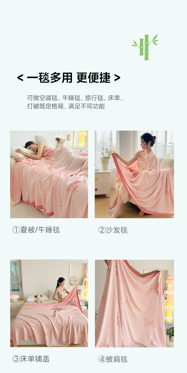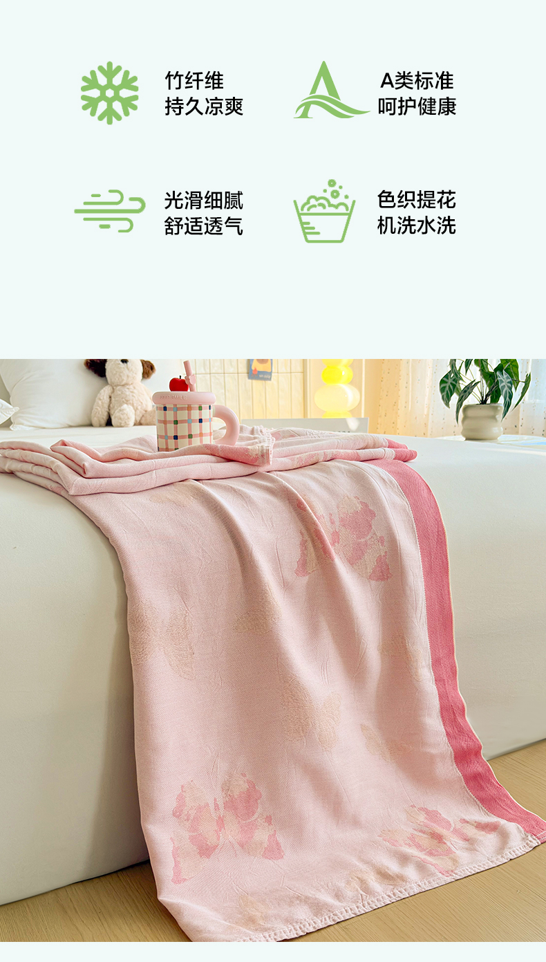 (总)棠薇家纺 2026新款竹纤维毯子冷感毯毛巾被柔滑多功能夏凉毯盖毯纱发毯办公室午休毯,夏花,竹韵蓝调,爱意玫瑰,巴洛克,蝴蝶飞飞,心愿,竹韵绿