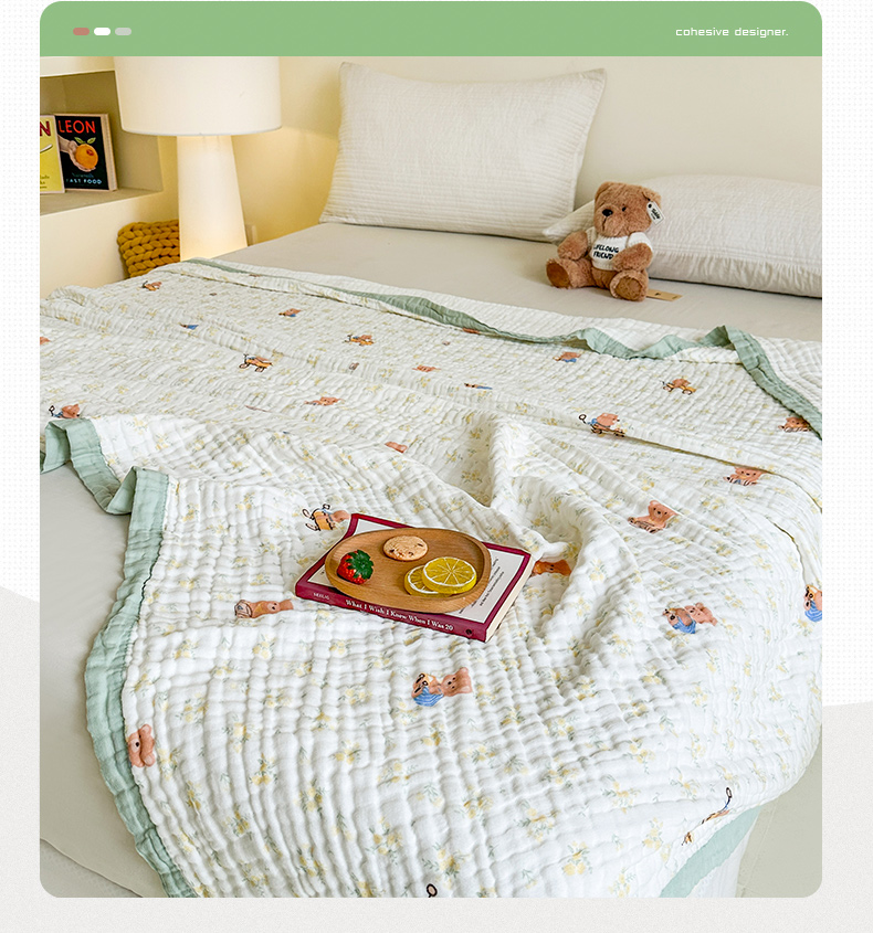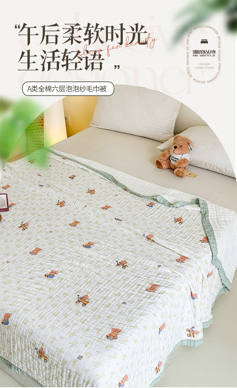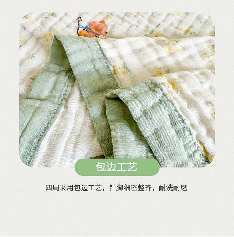 商品名称:慕婷家纺 2026新款婴儿纱布浴巾浴巾全棉六层纱布泡泡纱布毛巾被 春日花熊