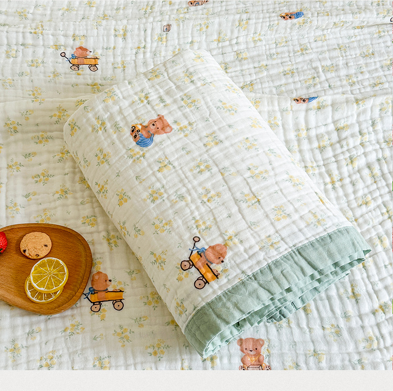 慕婷家纺 2026新款婴儿纱布浴巾浴巾全棉六层纱布泡泡纱布毛巾被 春日花熊