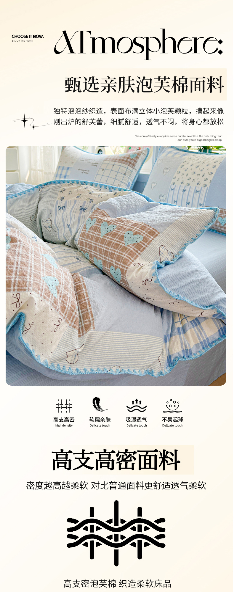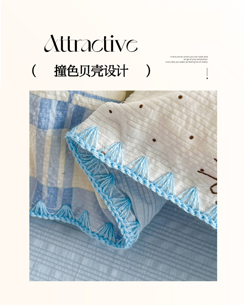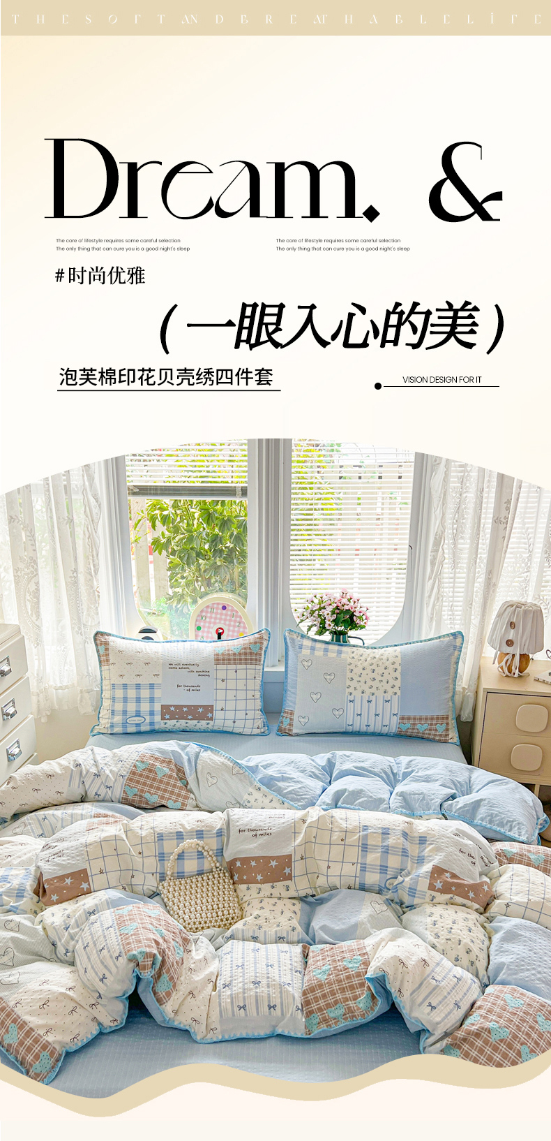 当前位置: 91家纺网 > 商品网购 > 床品套件 > 四件套 > 其它四件套 > 恒尚居 2026新款泡芙纱四件套贝壳绣边床盖套件单被套床单床笠 【拼格奶蓝】贝壳边