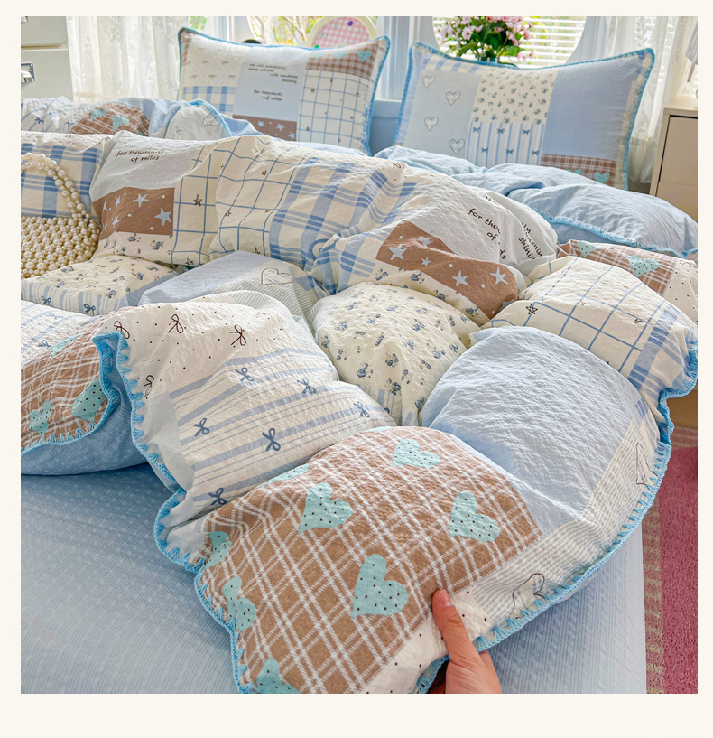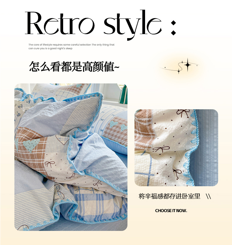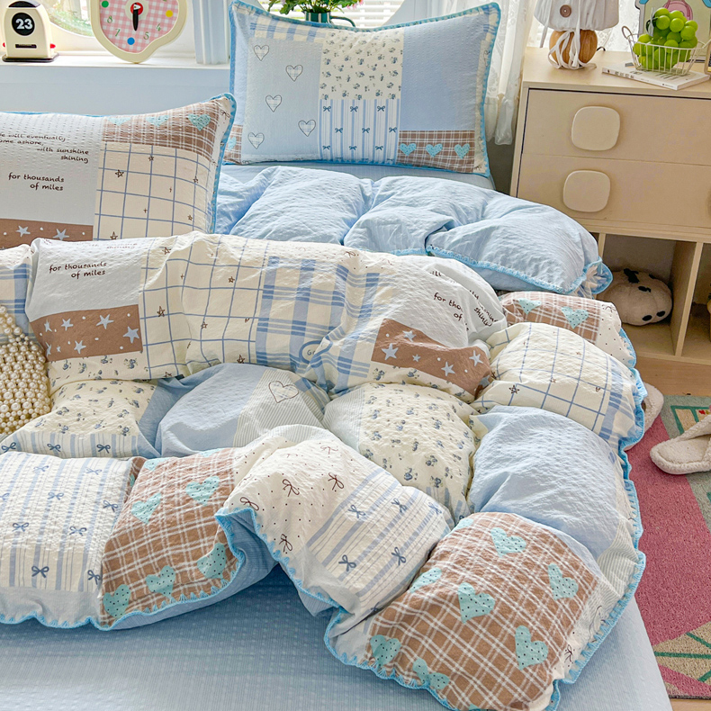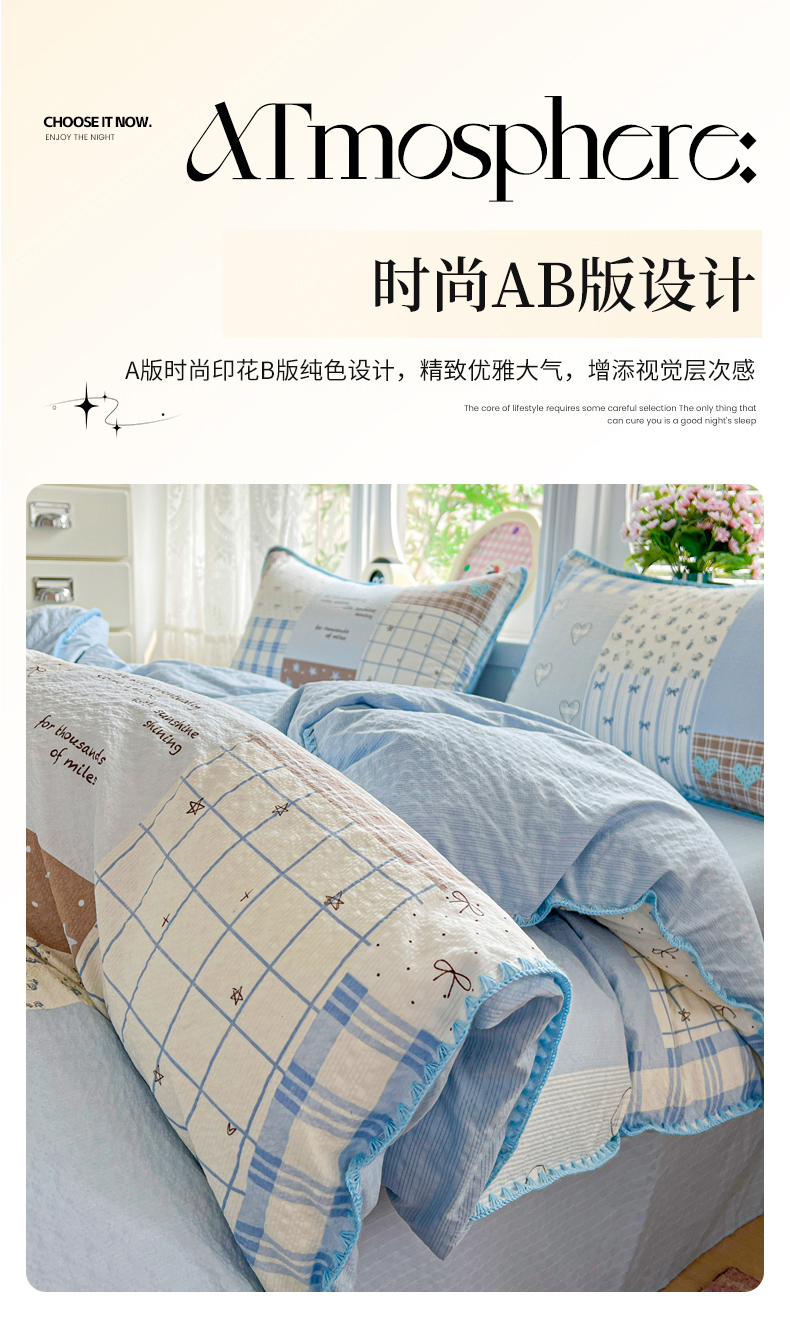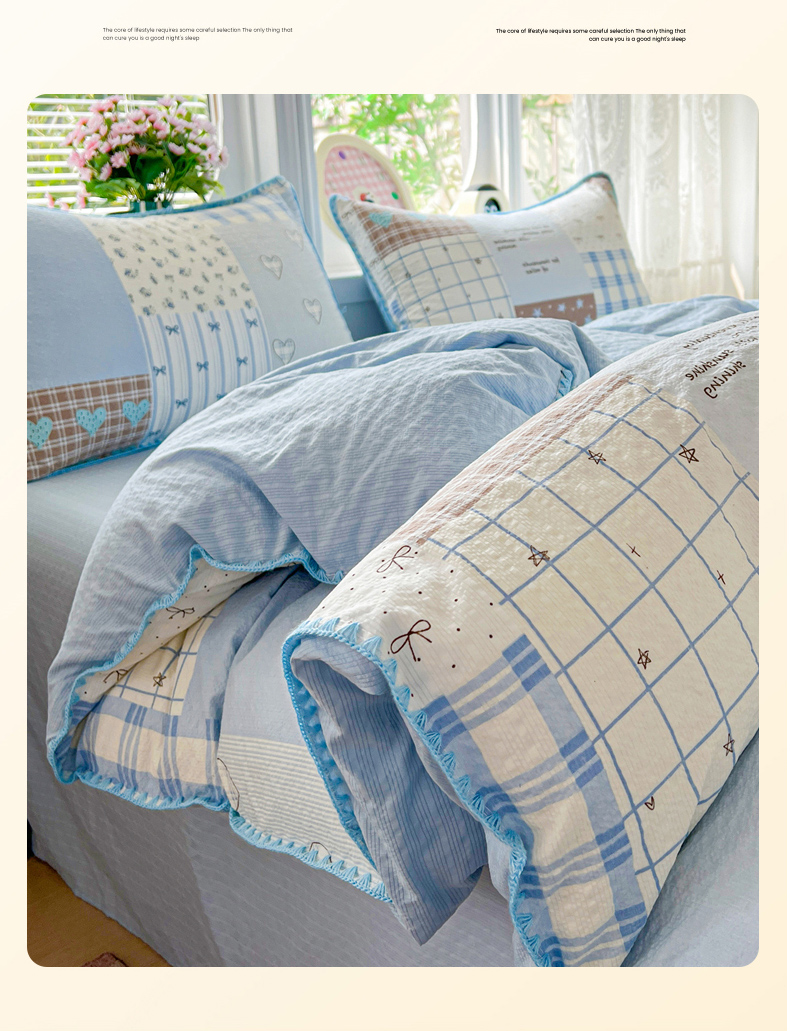 当前位置: 91家纺网 > 商品网购 > 床品套件 > 四件套 > 其它四件套 > 恒尚居 2026新款泡芙纱四件套贝壳绣边床盖套件单被套床单床笠 【拼格奶蓝】贝壳边