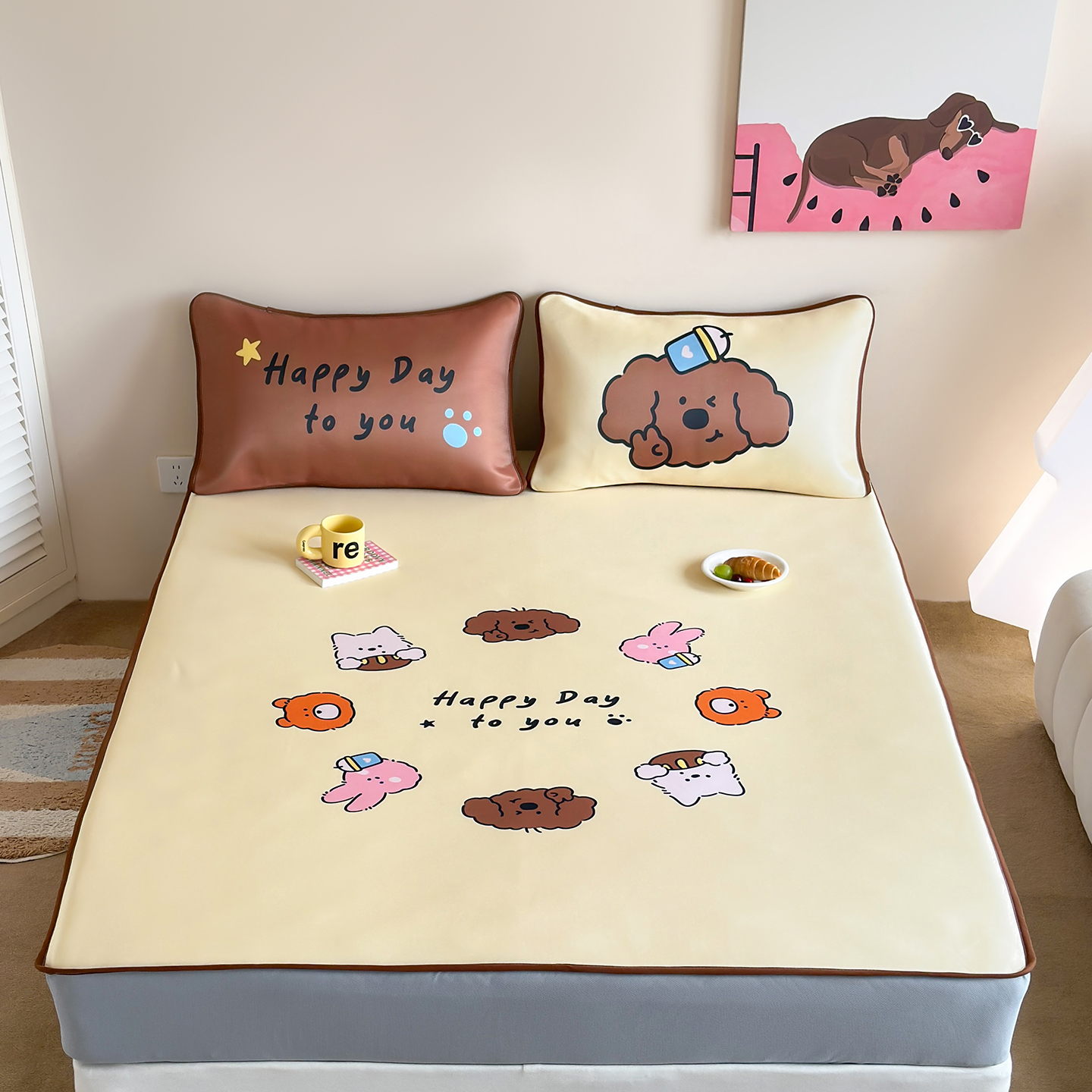 桃喜 2026新款数码印花冰纤维牛奶丝凉席 小熊来信