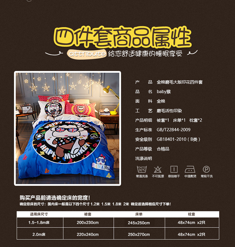 商品名称:芃成家纺 2017平网全棉四件套 baby猴