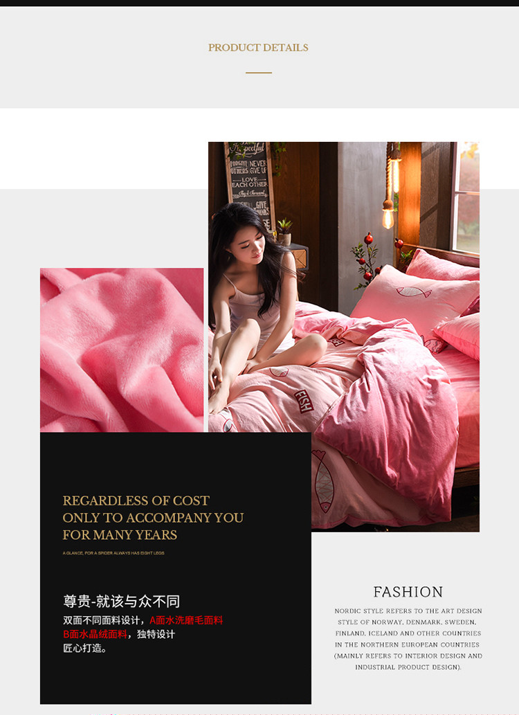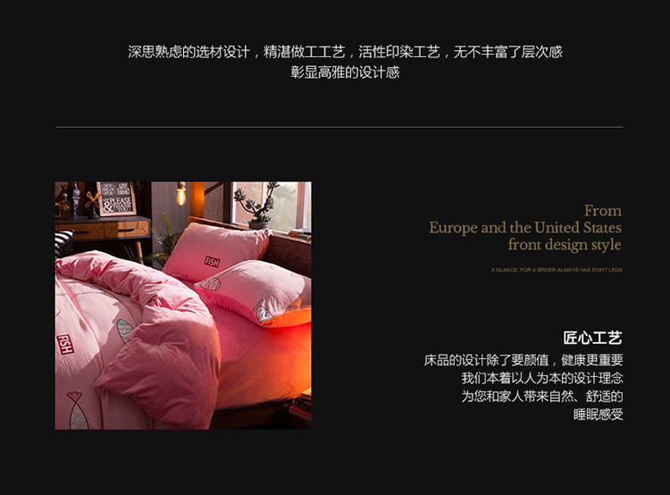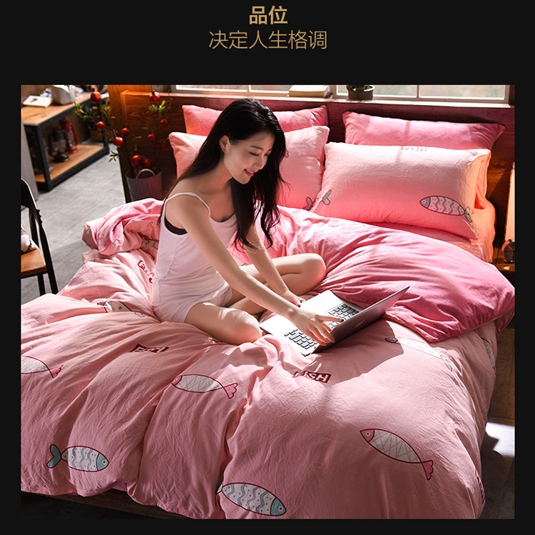芃成家纺 水洗磨毛加绒四件套 快乐小鱼
