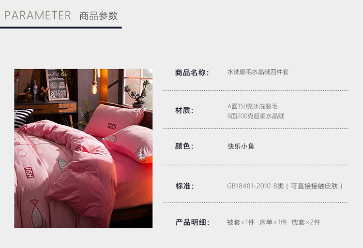 商品名称:芃成家纺 水洗磨毛加绒四件套 快乐小鱼