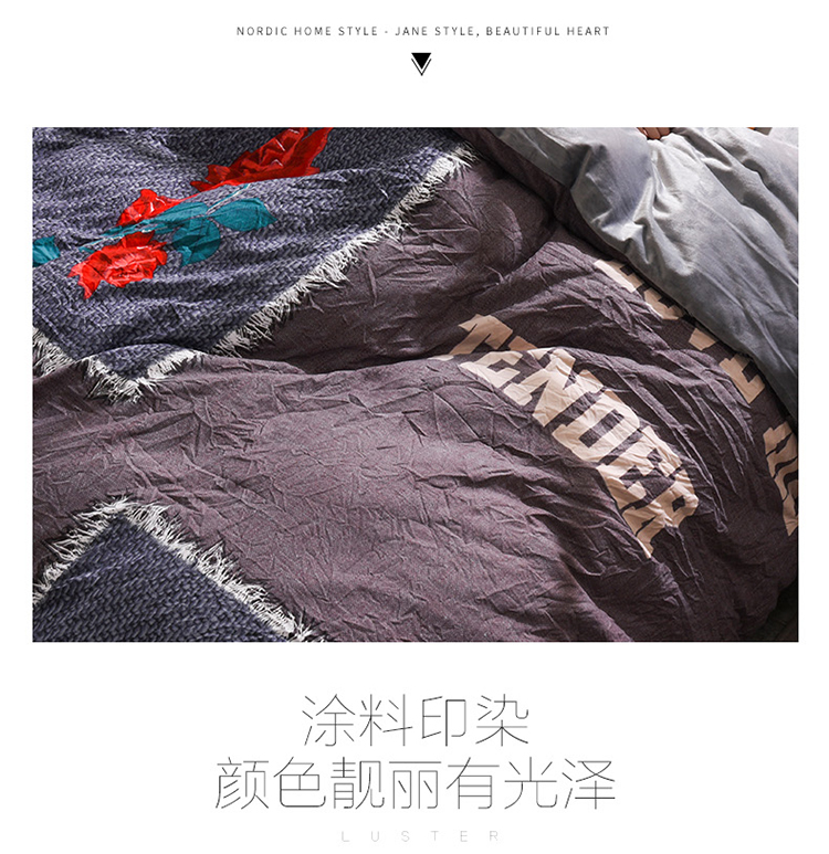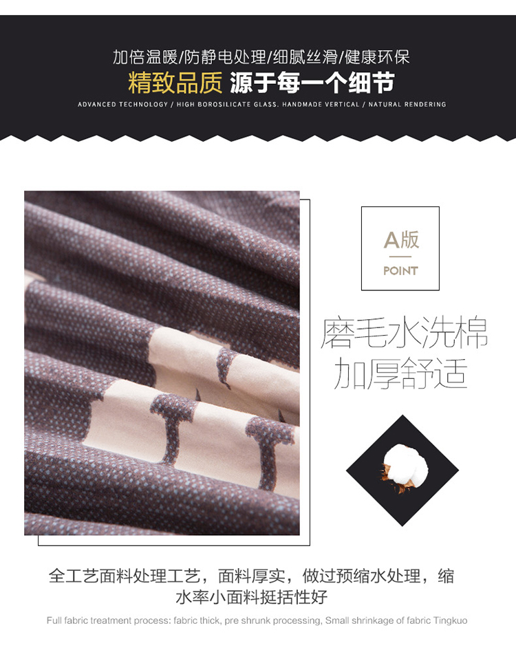 芃成家纺 磨毛水洗棉平网印花拼水晶绒四件套繁花