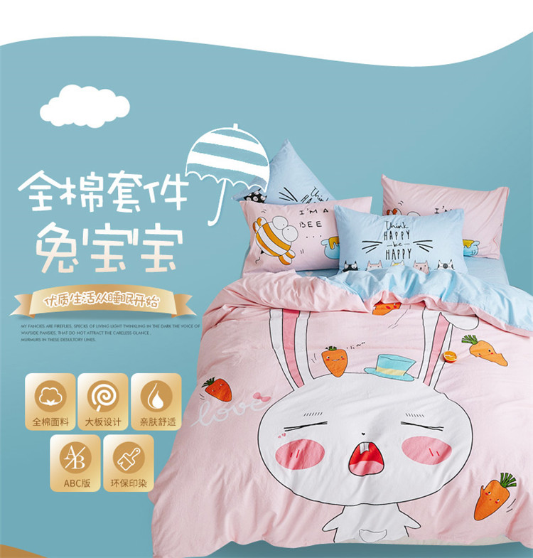 当前位置: 91家纺网 > 商品网购 > 床品套件 > 四件套 > 全棉普通四件套 > 加厚全棉刺绣四件套卡通四件套大版四件套全棉三件套儿童 兔宝宝