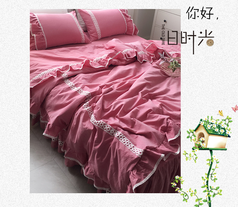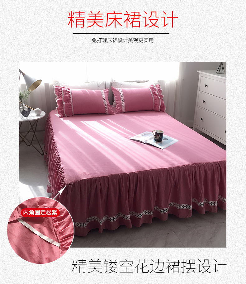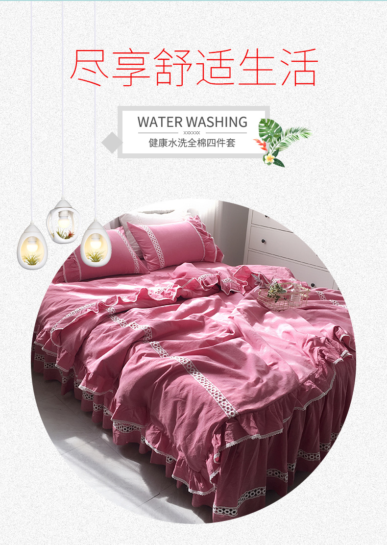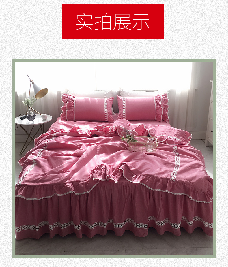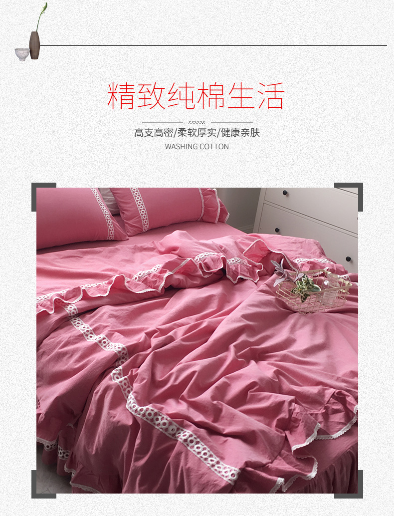 菊上家纺-全棉色织水洗镂空床裙四件套-歌舞红
