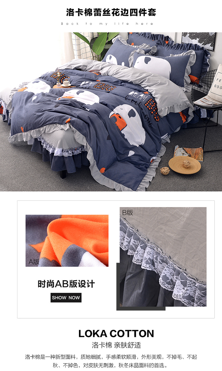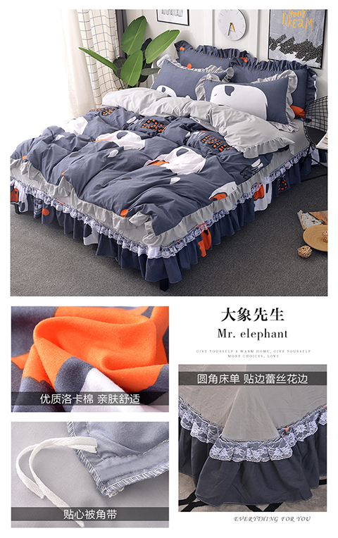 商品名称:梦柏 2018新款洛卡棉蕾丝花边四件套 大象先生