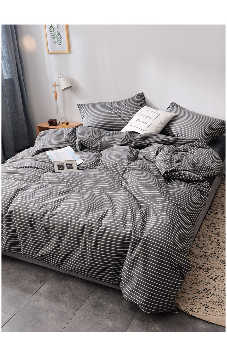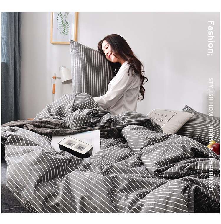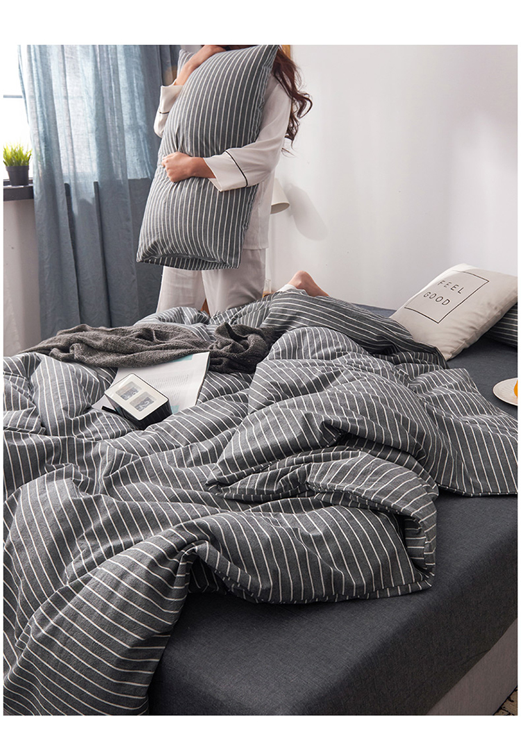 柠萌家居新款全棉色织水洗棉无印良品四件套床单款中条纹-深灰色
