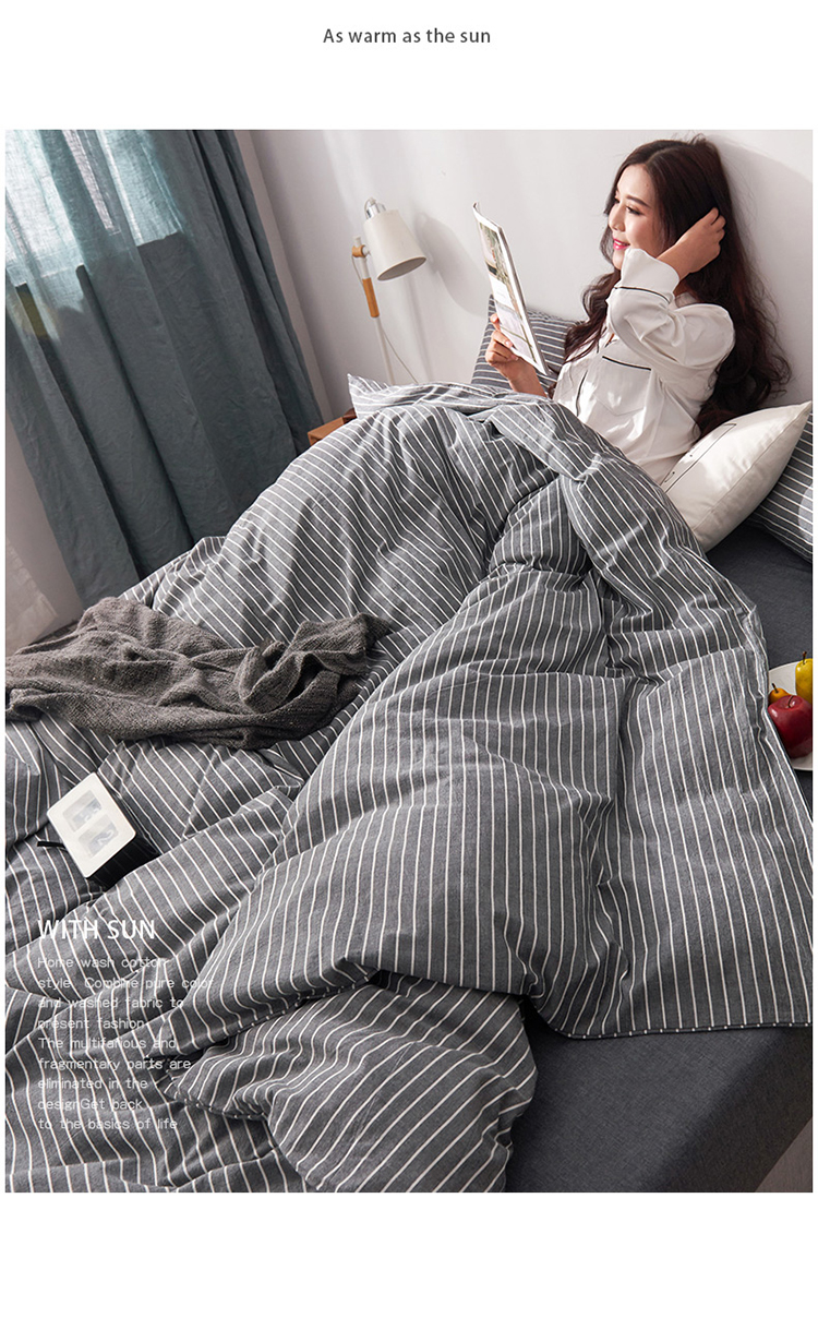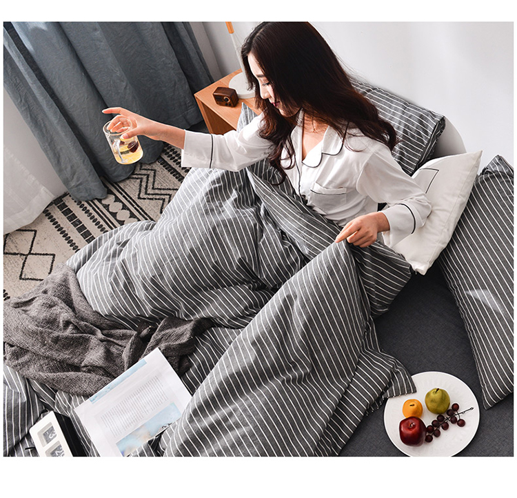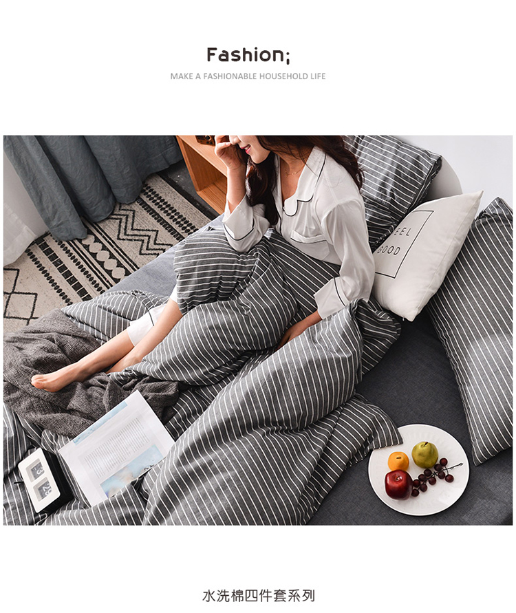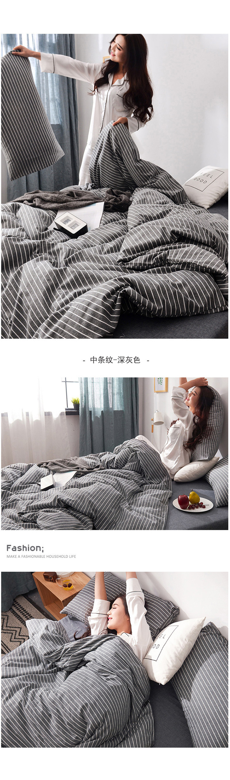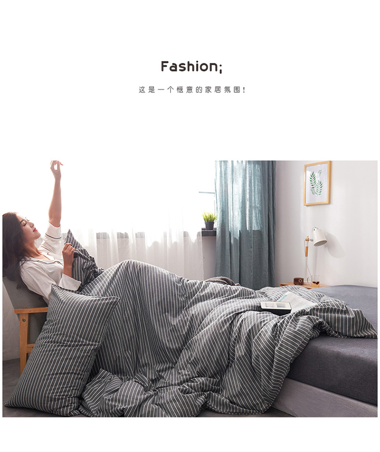 商品名称:柠萌家居新款全棉色织水洗棉无印良品四件套床单款中条纹-深灰色
