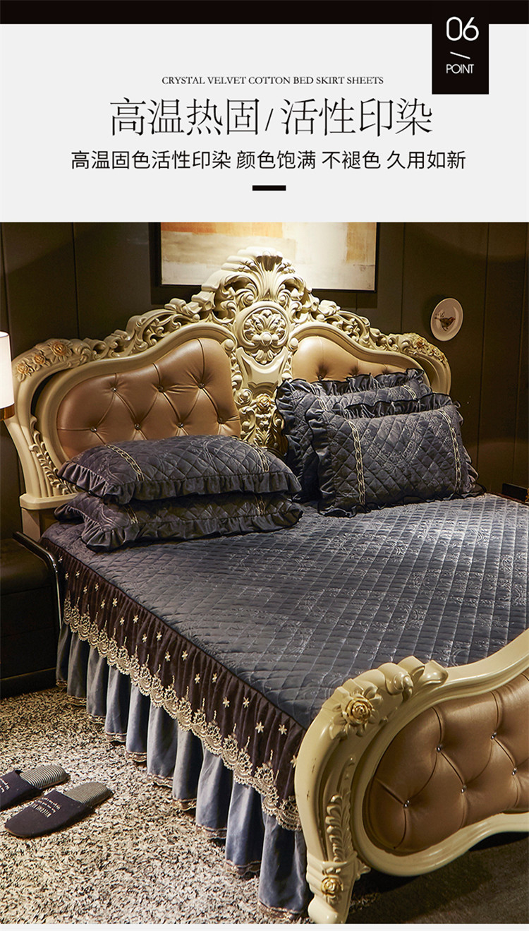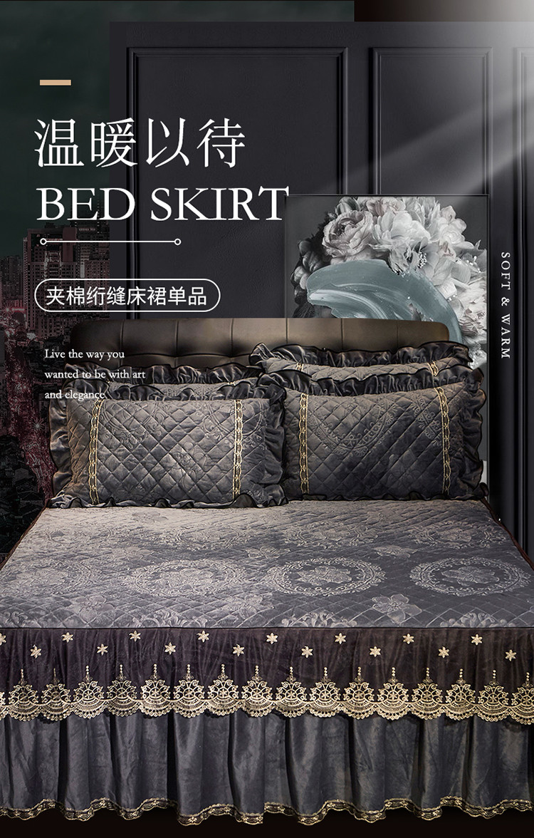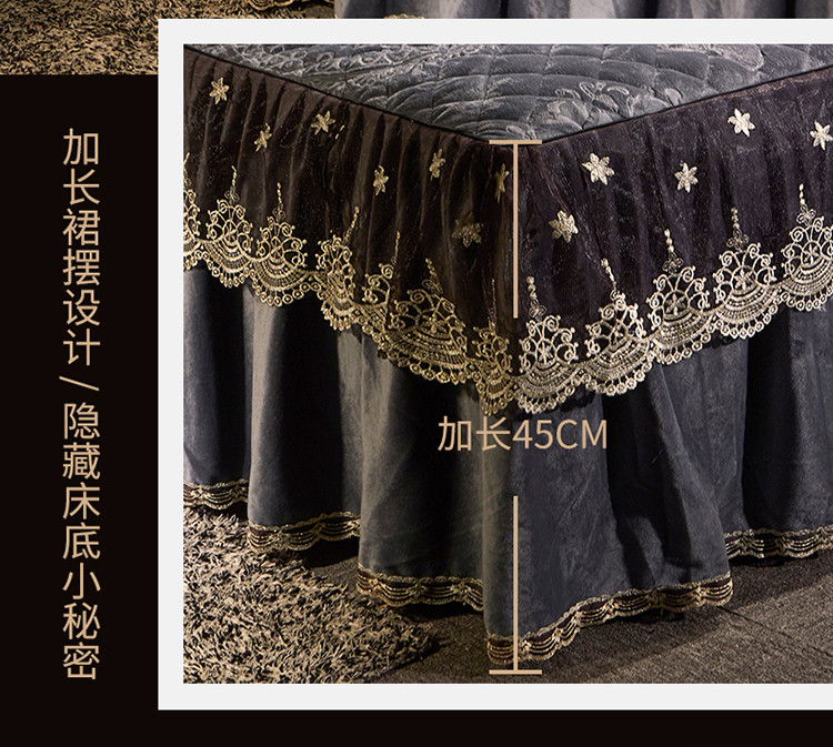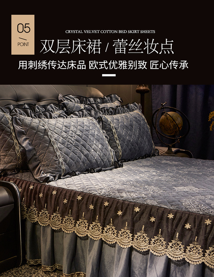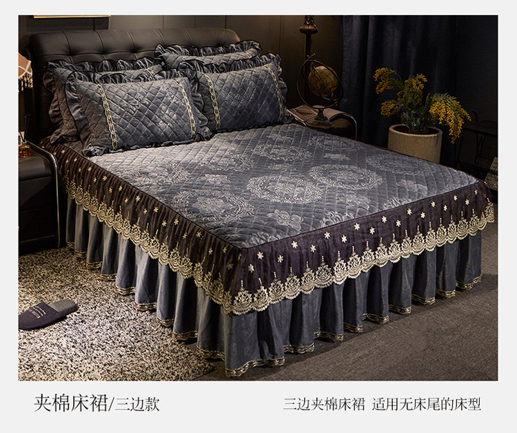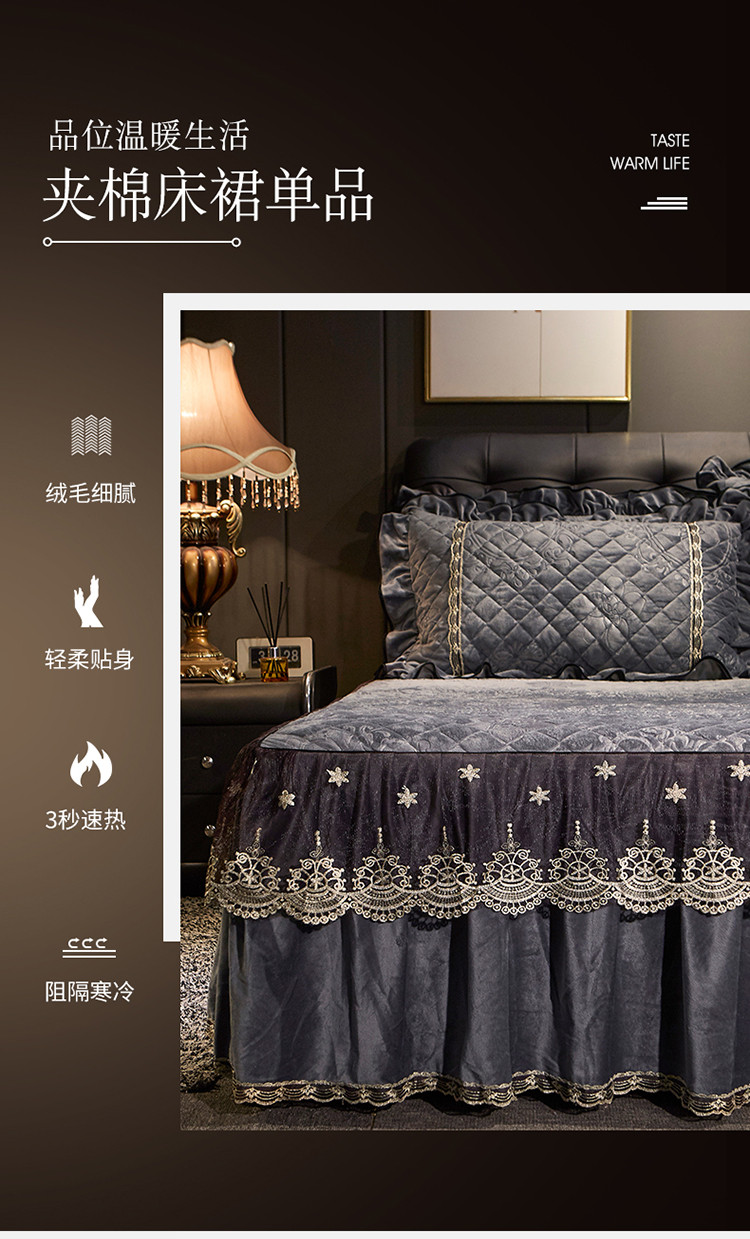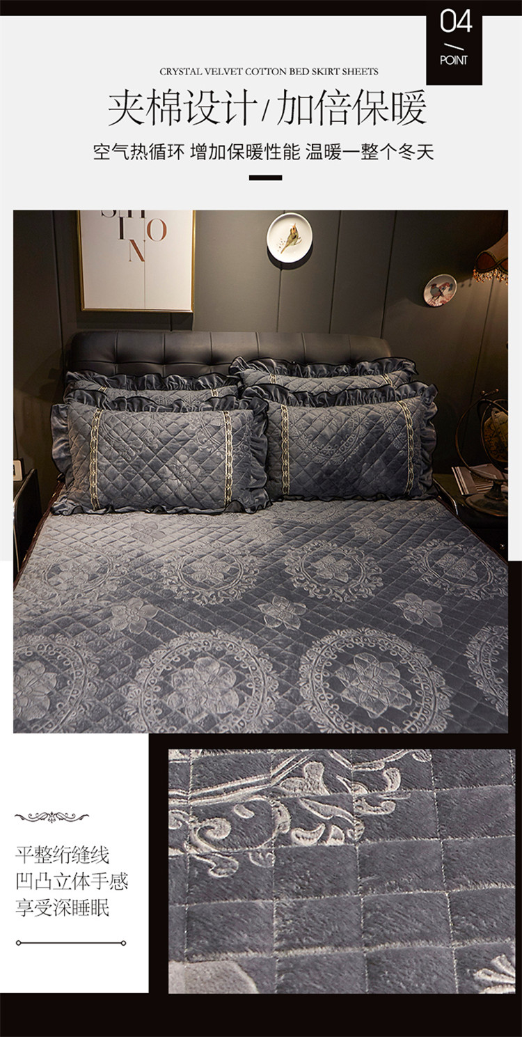 宜凡家纺 2019水晶绒夹棉床裙三边 花之都-银灰