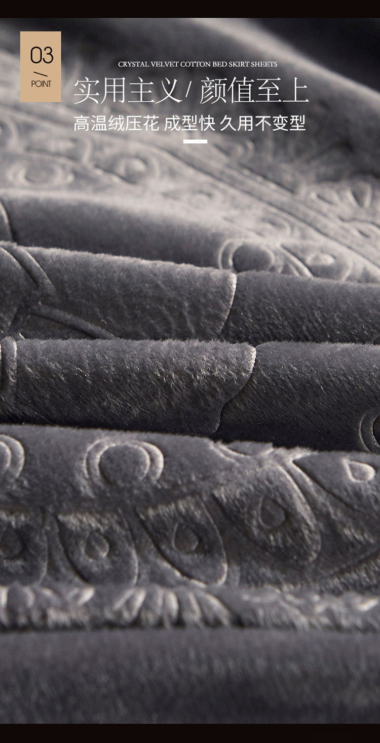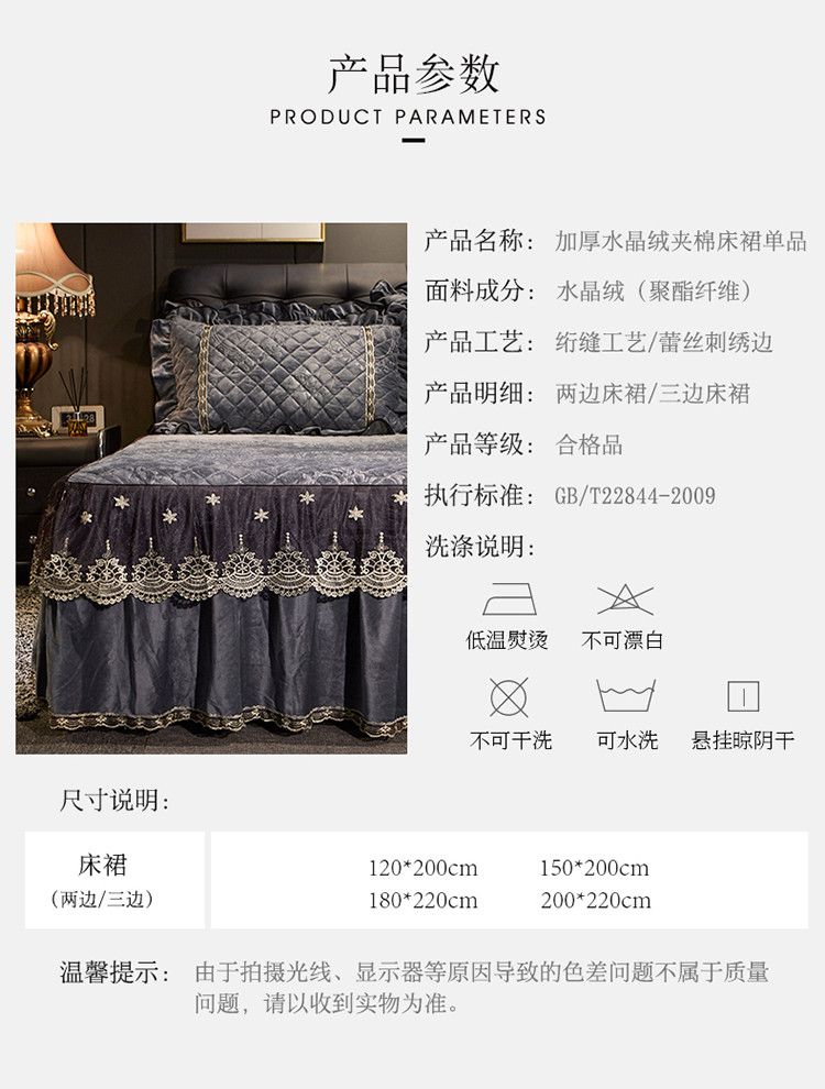商品名称:宜凡家纺 2019水晶绒夹棉床裙三边 花之都-银灰