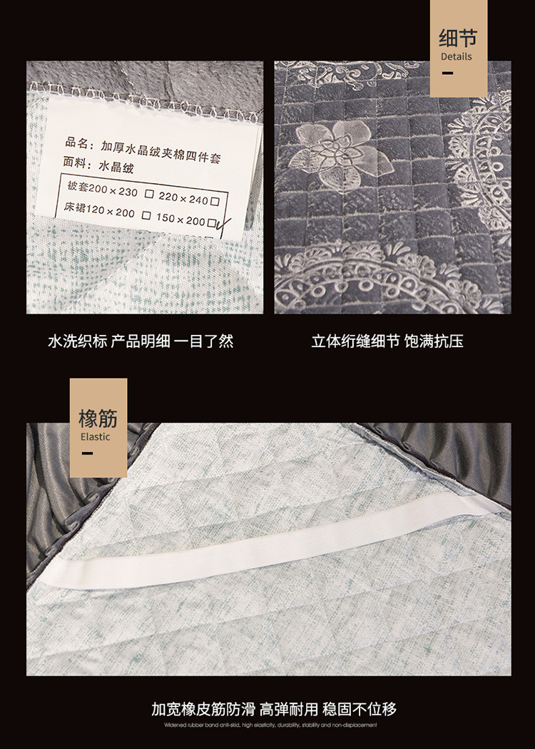 (总)宜凡家纺 2025新款婴儿绒压花全夹棉床盖四件套,韵雅-中国红,韵雅-黑天鹅