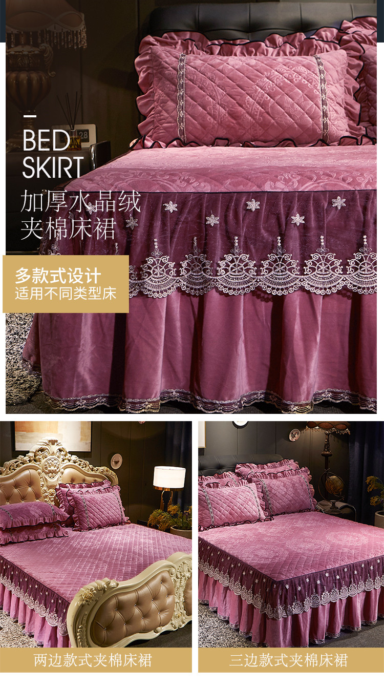 商品名称:宜凡家纺 2019新款水晶绒夹棉床裙四件套 花之都-浅豆沙
