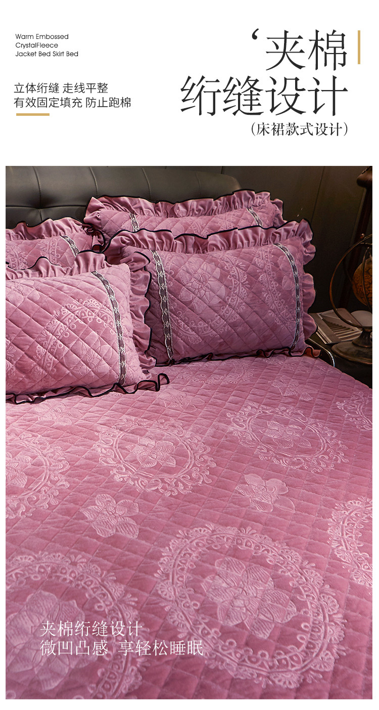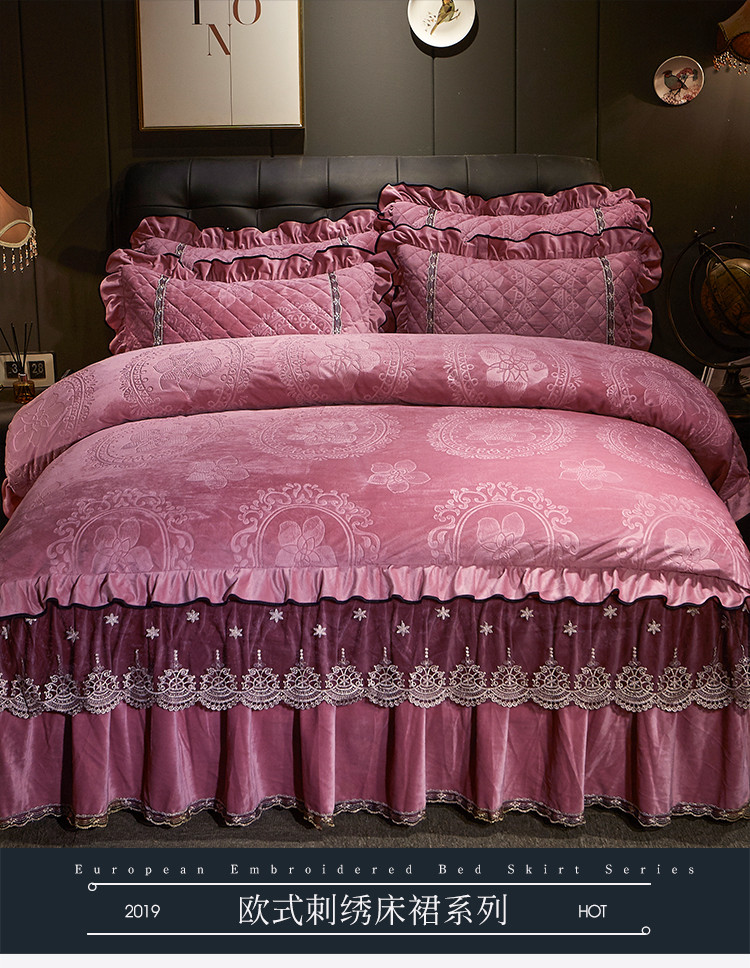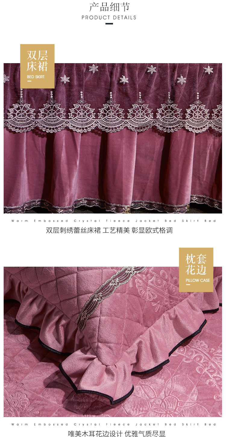 (总)宜凡家纺 2025新款兔绒提花牛奶绒夹棉床裙四件套,爱心 少女粉,爱心 粉紫,爱心 驼色,蝶舞 大红,蝶舞 米色,蝶舞 浅紫,蝶舞 玉色,简爱 苍青,简爱 豆沙紫,简爱 玉色,樱桃 苍青,樱桃 豆沙紫,樱桃 奶油白
