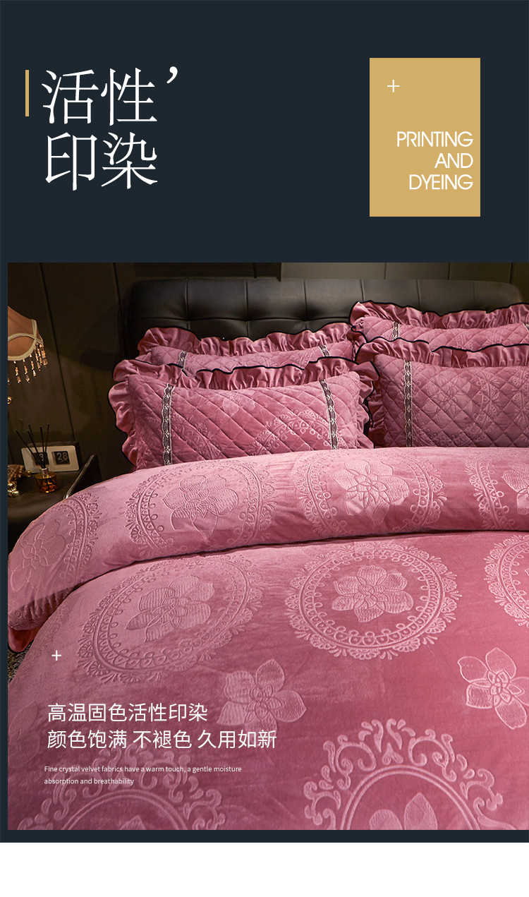 (总)宜凡家纺 2025新款婴儿绒压花全夹棉床盖四件套,韵雅-中国红,韵雅-黑天鹅